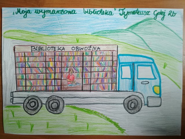 Tymoteusz Galej i Weronika Witek namalowali prace pt. "Wymarzona biblioteka" z okazji Tygodnia Bibliotek. Te prace zostaną nagrodzone. Gratulujemy!!!!
