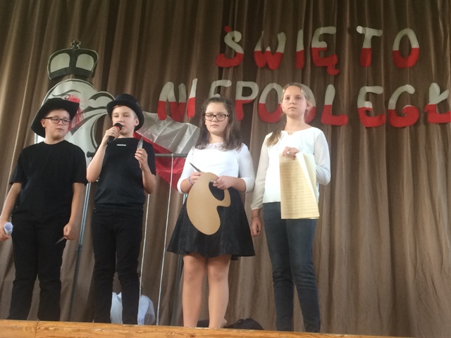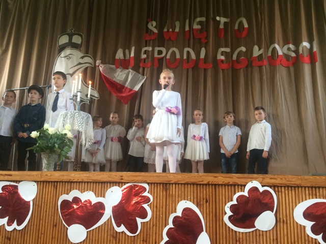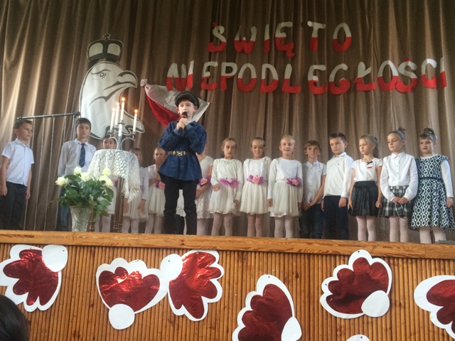 8 listopada w naszej szkole odbyła się uroczysta akademia poświęcona setnej rocznicy odzyskania przez Polskę niepodległości. Przedstawienie „ Tu nasze miejsce, tu nasz kraj” pokazali uczniowie klas starszych. Zastanawiali się co znaczy słowo wolność, śpiewali pieśni patriotyczne. Uczniów przygotowały panie: Alina Kubaszczyk i Aleksandra Stokłosa- Wapienik. Następnie dzieci uczęszczające na zajęcia kółka teatralnego z klasy 5a, opowiedziały o historii naszego godła narodowego w przedstawieniu "Biały Orzeł”. Dzieci przygotowała pani Agnieszka Gołyszny. Montaż słowno- muzyczny pięknie pokazali uczniowie z klasy 3 oraz dzieci, które przygotowały wiersze o naszej Ojczyźnie na Gminny Konkurs Recytatorski klas 1-3. O wszystkich, którzy zginęli za naszą Ojczyznę przypomniały słowa smutnej pieśni „Białe róże”, a nastrojowa melodia i blask płonących świec wszystkich wprowadził w świąteczny nastrój. Na zakończenie, dzieci z klas1-3 wspólnie wyrecytowały wiersz Władysława Bełzy „Katechizm małego dziecka” jako 100 recytujących dla Niepodległej. To, taki nasz mały rekord. Uczniów z klasy 3 przygotowała pani Lucyna Gołyszny, a piękną dekorację wykonała pani Urszula Łamacz.