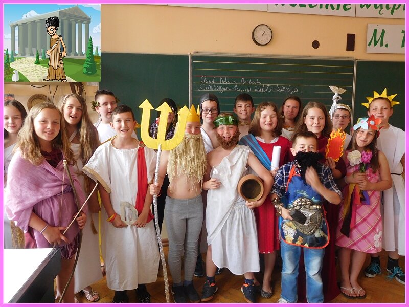 Jak każdego roku, tak i w tym w klasach czwartych w ramach lekcji historii odbyły się prezentacje dotyczące bogów greckich. Każdy uczeń miał do wyboru jednego z wielu bogów greckich. Należało samodzielnie wykonać strój oraz przygotować parę zdań na temat tej postaci. Uczniowie świetnie wywiązali się z tego zadania.Stroje były rewelacyjne ! Gratulacje.