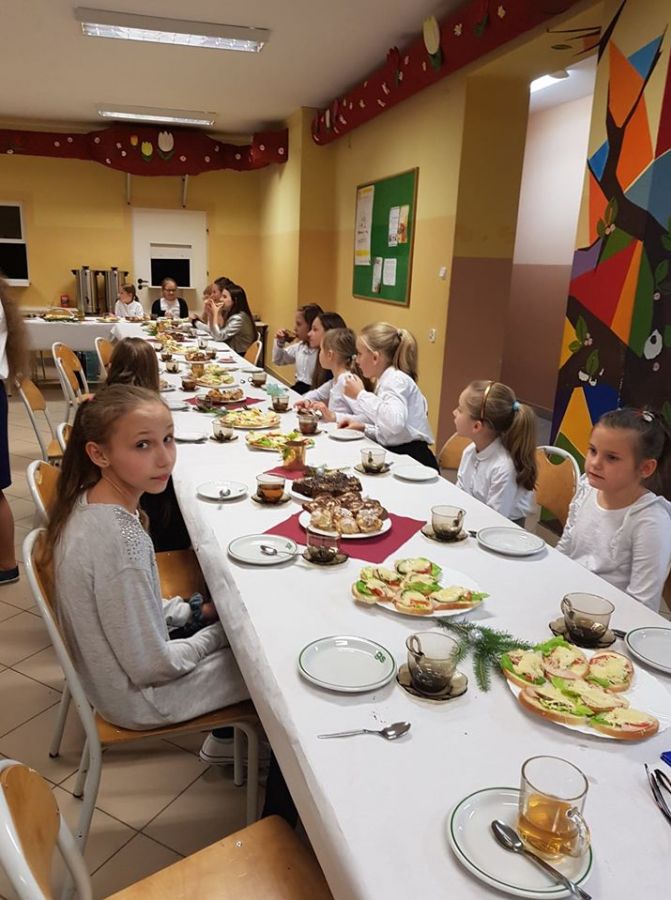 Poniedziałkowy wieczór był właśnie takim czasem. Mogliśmy ugościć w naszej szkole wychowanków z Domu Dziecka w Międzyświeciu. W świątecznie udekorowanej sali można było poczuć magię nadchodzących Świąt. Była choinka z prezentami, światło świec, świąteczne wypieki i pyszne kanapki.