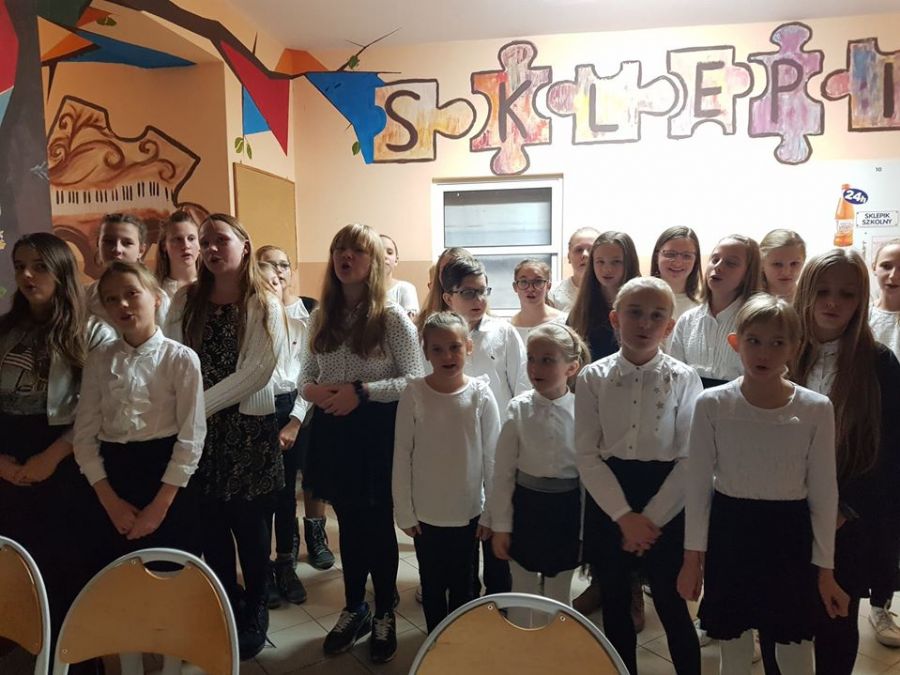 Uczniowie naszej szkoły zasiedli z gośćmi do stołu, aby wspólnie kolędować i podzielić się radością Bożego Narodzenia. Szczególny klimat wprowadziła opowieść oparta na fragmentach Musicalu Metro, przypominająca wszystkim, co w te Święta jest najważniejsze, że w Bożym Narodzeniu nie liczy się wielka choinka, ani bogaty prezent. W Święta Bożego Narodzenia najważniejsza jest wiara w ludzi, marzenia, że wystarczy podarować puste pudełko i włożyć do niego to, czego nie widać- włożyć odrobinę swojej miłości. Zwieńczeniem tej opowieści była pięknie zaśpiewana przez naszych chórzystów kolęda „Uciekali”, która skłaniała do refleksji- mimo ciężkich chwil zawsze pozostaje nadzieja.