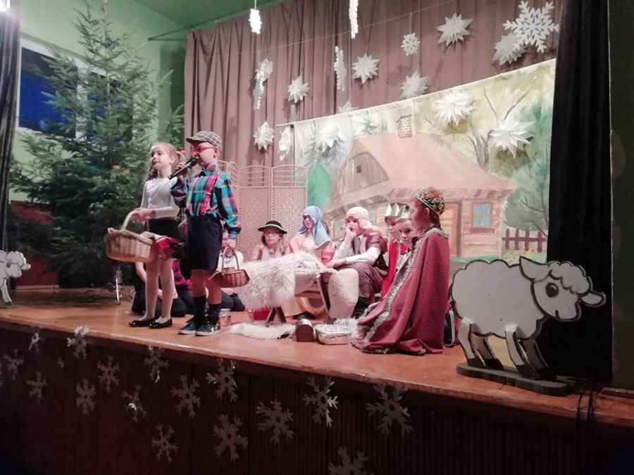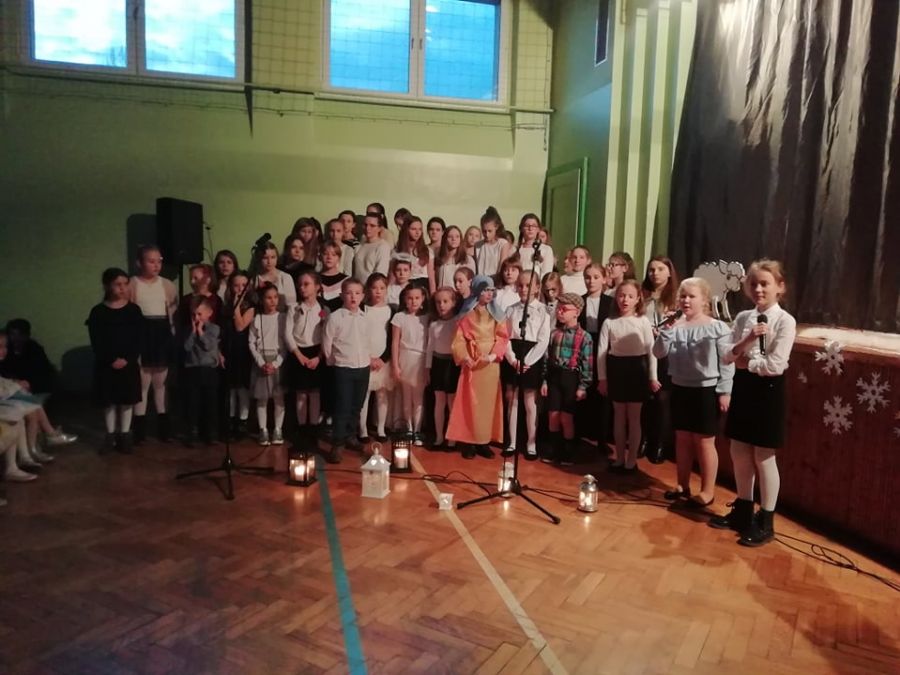 W środę, 18 grudnia o godz.16.00 odbyło się w naszej Szkole świąteczne spotkanie dla rodziców. Program przygotowali uczniowie klasy II i IV. Licznie zebrani rodzice, uczniowie i nauczyciele mogli obejrzeć dwa przedstawienia, nawiązujące do Świąt Bożego Narodzenia oraz trzy układy taneczne, w wykonaniu pierwszoklasistów. Tym razem Jasełka miały charakter gwarowy. Mali artyści nie tylko przedstawili historię narodzenia Jezusa w Betlejem, zgodnie z biblijnym przekazem ale również pokazali bogatą tradycję językową Śląska Cieszyńskiego, naszej małej Ojczyzny. Całość uświetnił chór szkolny pod dyr. Pani Aliny Kubaszczyk, który zaśpiewał kilka kolęd.
