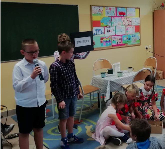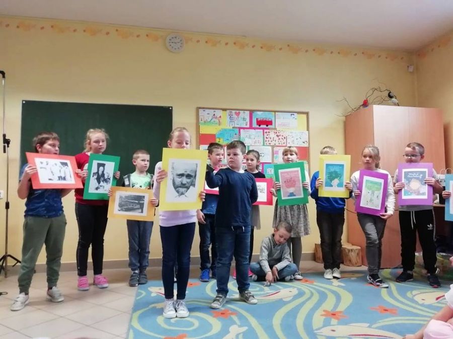 Uczniowie z klasy 2b przybliżyli wszystkim obecnym, sylwetkę pedagoga Janusza Korczaka, natomiast klasa 2a zaprezentowała wiersze pani Wandy Chotomskiej.