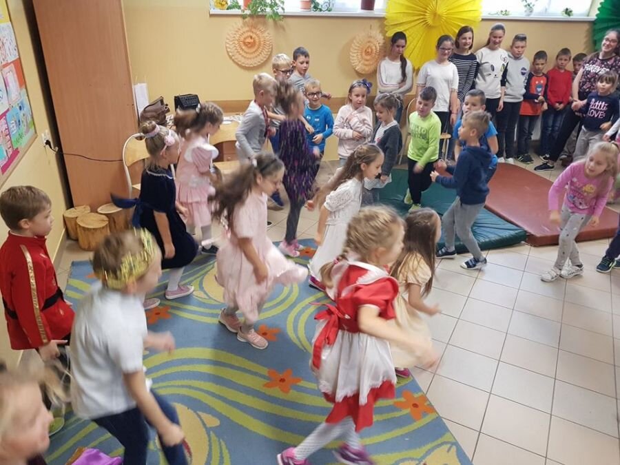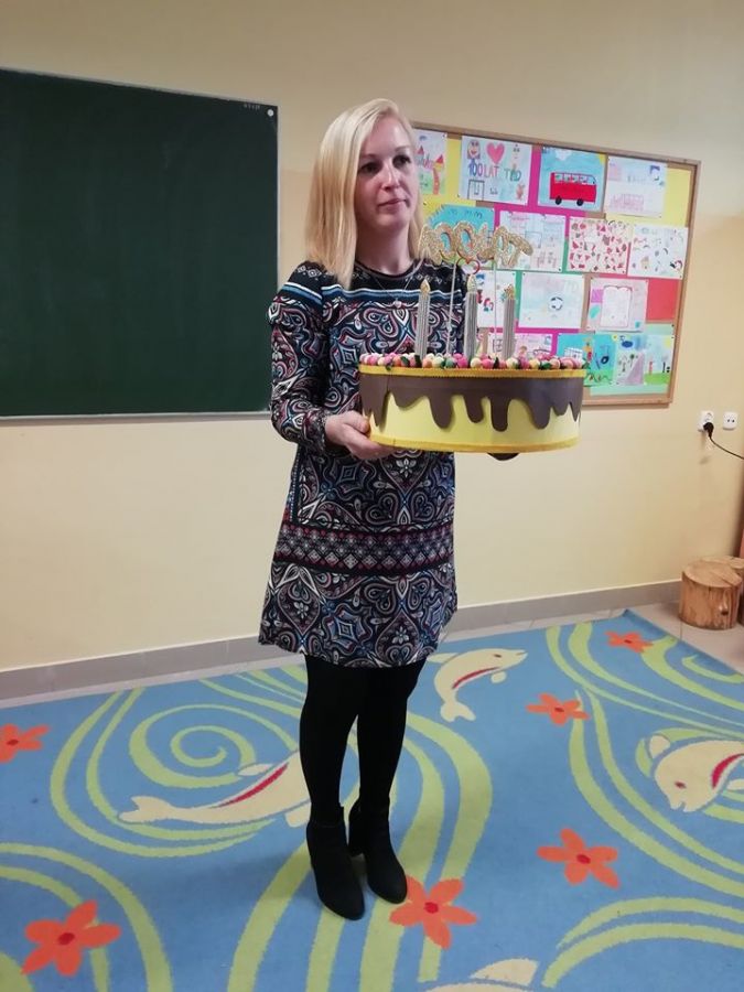 Jak na urodziny przystało był „słodki” tort, były życzenia i zabawa taneczna, którą poprowadziły dzieci z kółka teatralnego z klasy 1a.