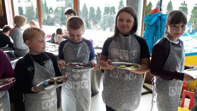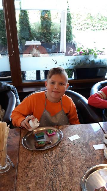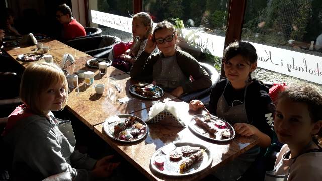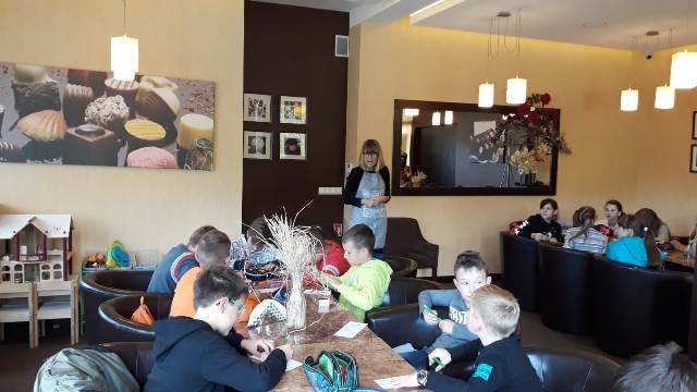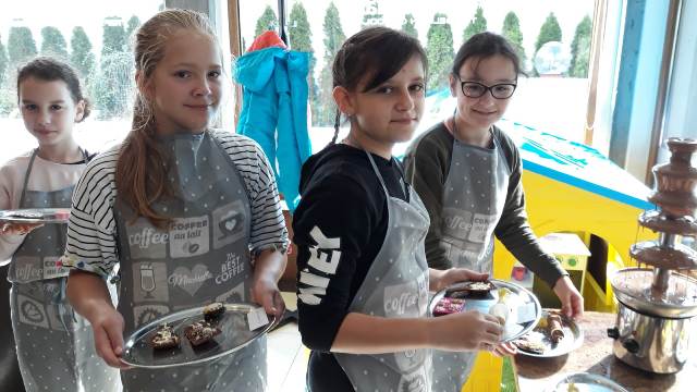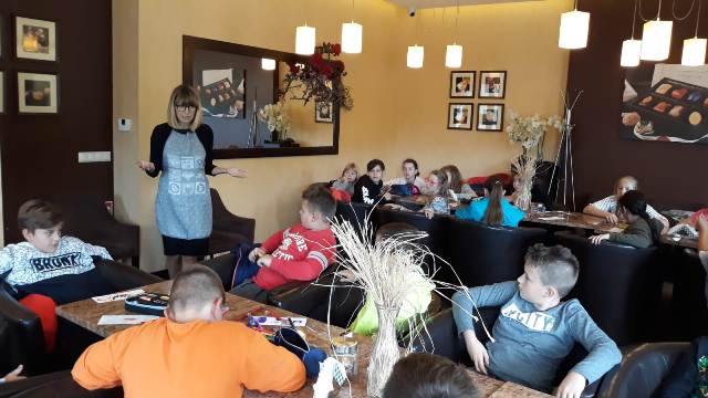 W piątek 04.10.2019 uczniowie klasy 5b i 5c gościli w Pijalni czekolady Mount Blanc w Wiśle,gdzie wzięli udział w warsztatach czekolady.W ramach spotkania degustowali trzy rodzaje pitnej czekolady, dowiedzieli się o uprawie kakao oraz wykonywali czekoladki. Podczas spaceru po Wiśle odwiedzili Dom Zdrojowy, gdzie mieści się czekoladowa figura Adama Małysza oraz galerię trofeów mistrza.Zadowoleni uczniowie wrócili ze słodkimi upominkami.