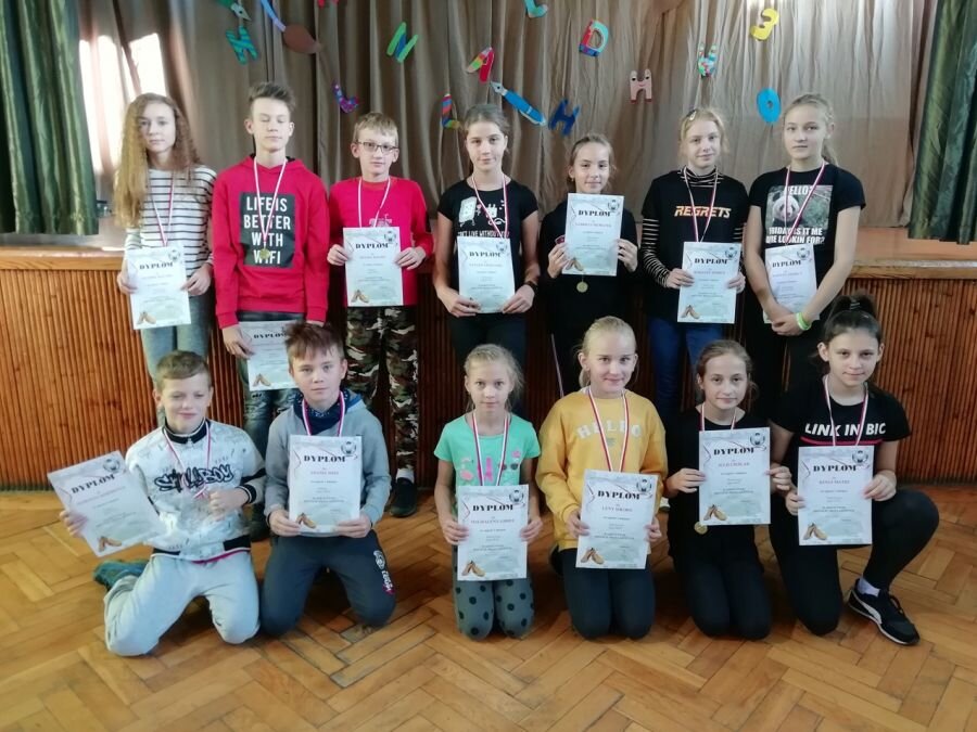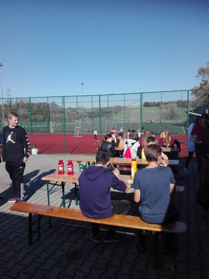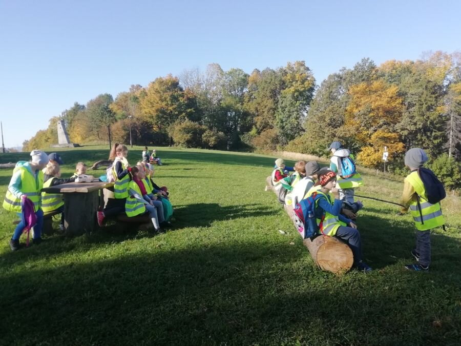 Poniedziałek, 14 października rozpoczęliśmy od uroczystego apelu na sali gimnastycznej , podczas którego mogliśmy obejrzeć pokaz taneczny w wykonaniu uczennic naszej szkoły. Zostały wręczone dyplomy i medale za Szkolne Biegi Przełajowe oraz za udział w Narodowym Czytaniu. Po zakończonym apelu uczniowie klas 1 udali się na spacer w poszukiwaniu oznak jesieni. Klasy 2 i 3 wyruszyły na górę Chełm, aby zjeść drugie śniadanie w jesiennej scenerii. Z kolei uczniowie klas 4-8 do południe spędzili na boisku LKS Olimpii świetnie się bawiąc podczas gry w piłkę i smażeniu kiełbasy. Wszyscy zadowoleni i uśmiechnięci wrócili do szkoły ok godziny 12.