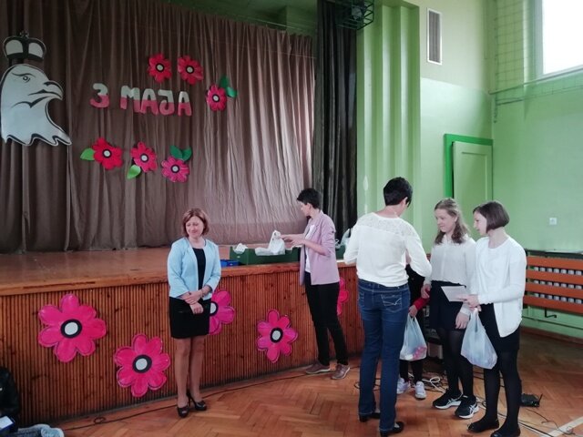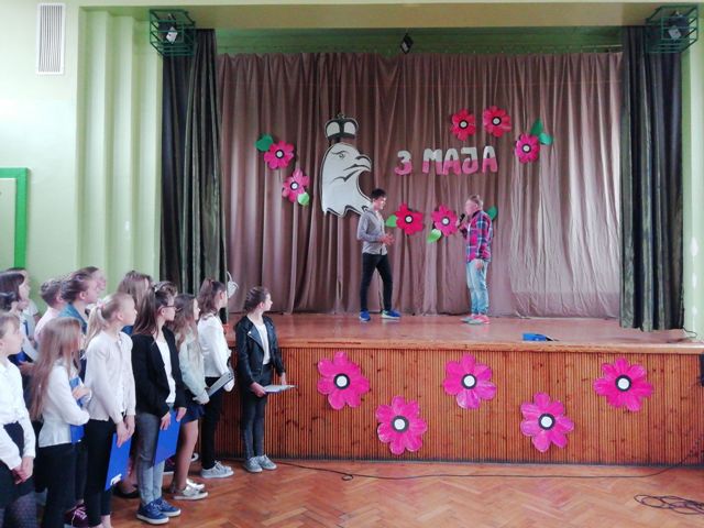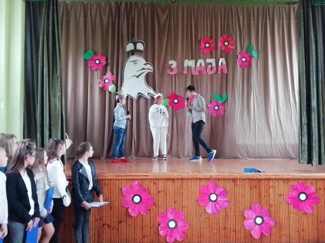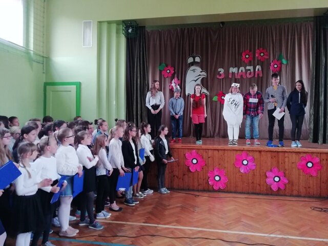 Jak co roku w naszej szkole odbyła się akademia poświęcona dniu 3 maja. Krótki program artystyczny przygotowało kółko teatralne pod okiem pani Aleksandry Stokłosy- Wapiennik . O oprawę muzyczną zadbał chór szkolny pod okiem pani Aliny Kubaszczyk. Na koniec akademii zostały wręczone narody za konkursy zorganizowane przez bibliotekę szkolną.