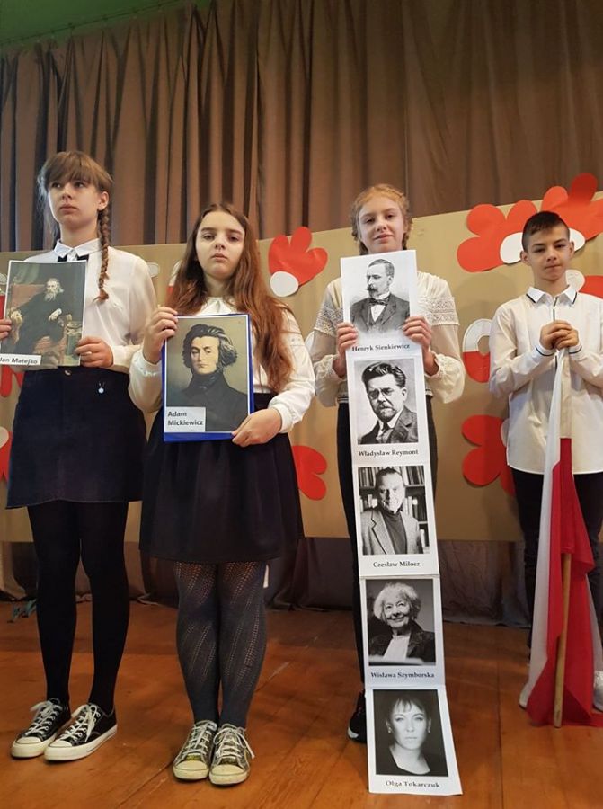 Polska, po 123 latach niewoli, znów pojawiła się na mapie Europy, jako suwerenne i niezależne państwo. Pamiętając o tych wydarzeniach, dziś odbyła się uroczysta Akademia z okazji Narodowego Święta Odzyskania przez Polskę Niepodległości. Uczniowie słowem i piosenką oddali szacunek symbolom narodowym, wyrazili swoją miłość do Ojczyzny oraz dumę z tego, że są Polakami. Atmosferę powagi nadał wspólnie odśpiewany Hymn Polski. Zgromadzeni na sali z zainteresowaniem wysłuchali przygotowanego montażu słowno- muzycznego, przypominającego wydarzenia sprzed lat.