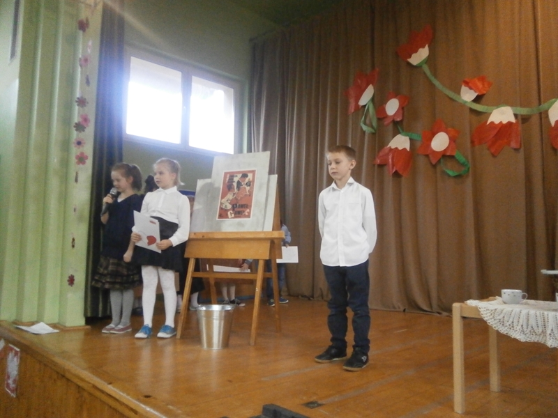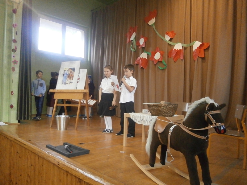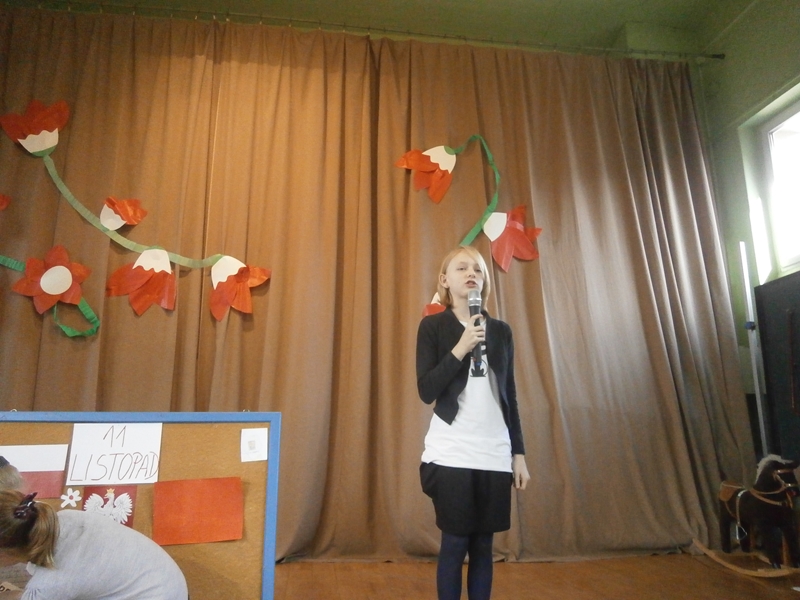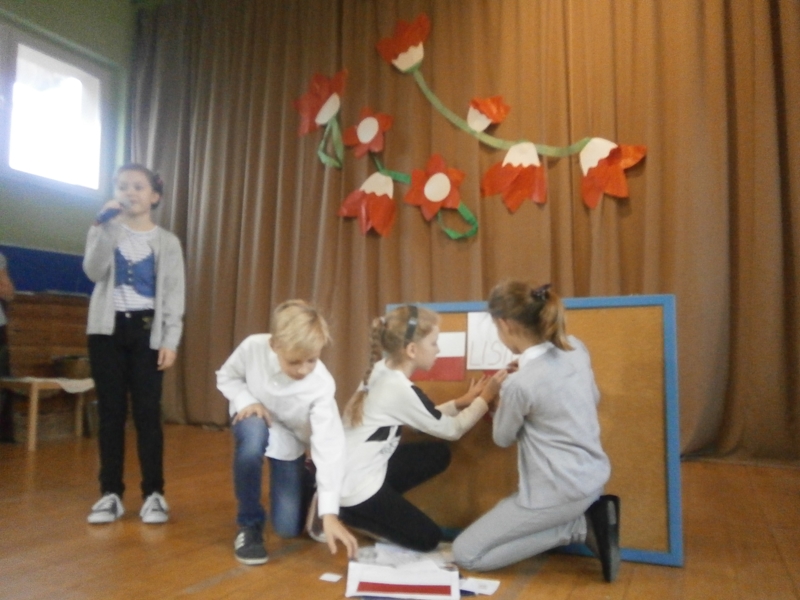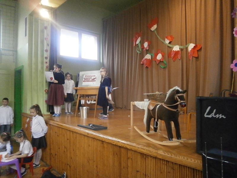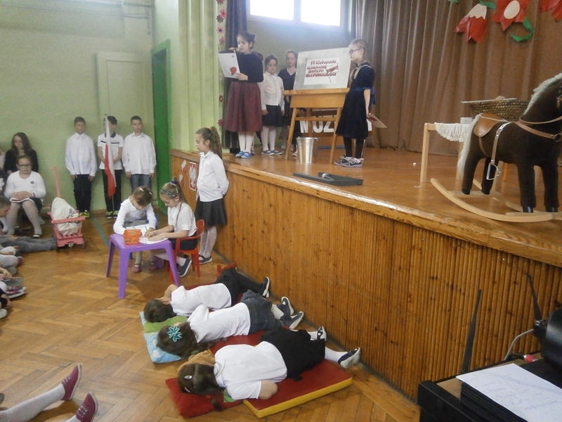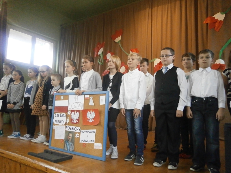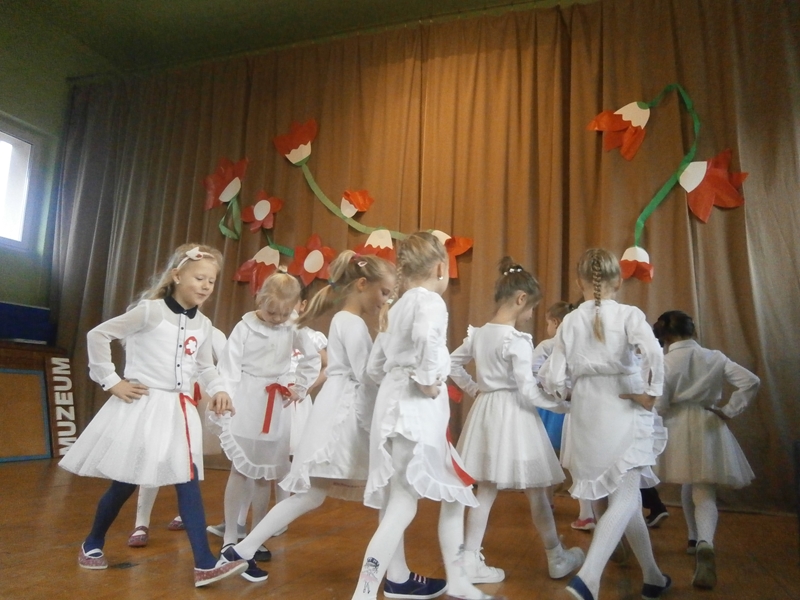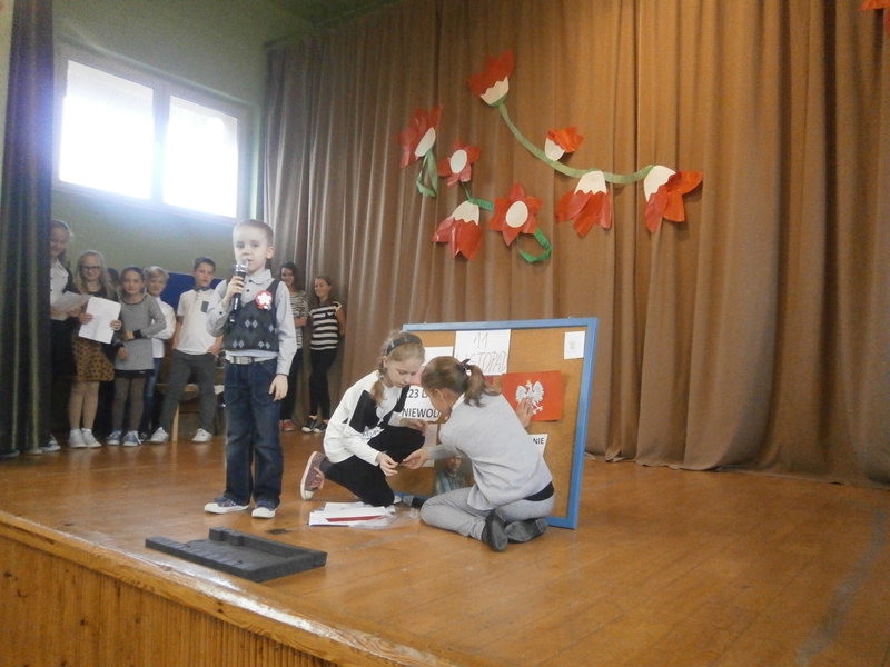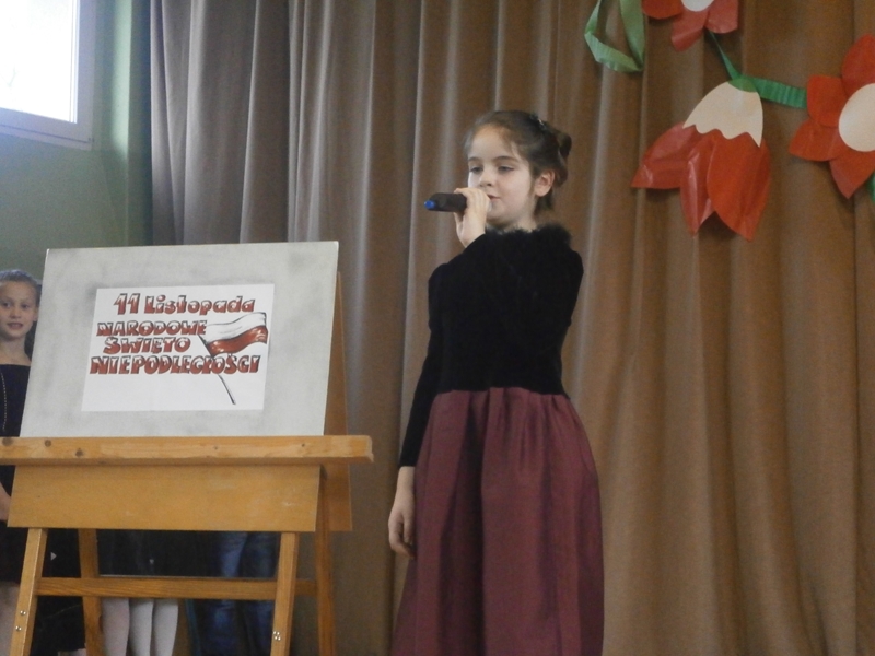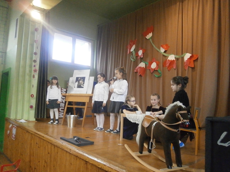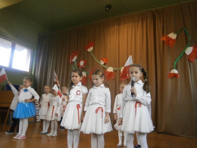 Uświetnili ją uczniowie klas 1,2 i 5 oraz szkolny chórek. Oprócz wierszy patriotycznych, usłyszeliśmy historię odzyskania niepodległości oraz spektakl o marszałku Piłsudskim. Całość dopełnili najmłodsi uczniowie tańcząc poloneza.