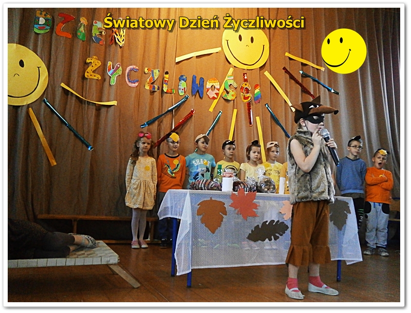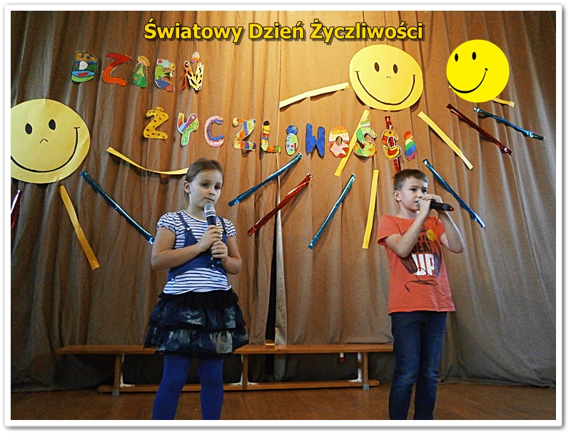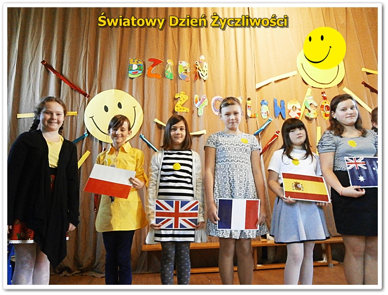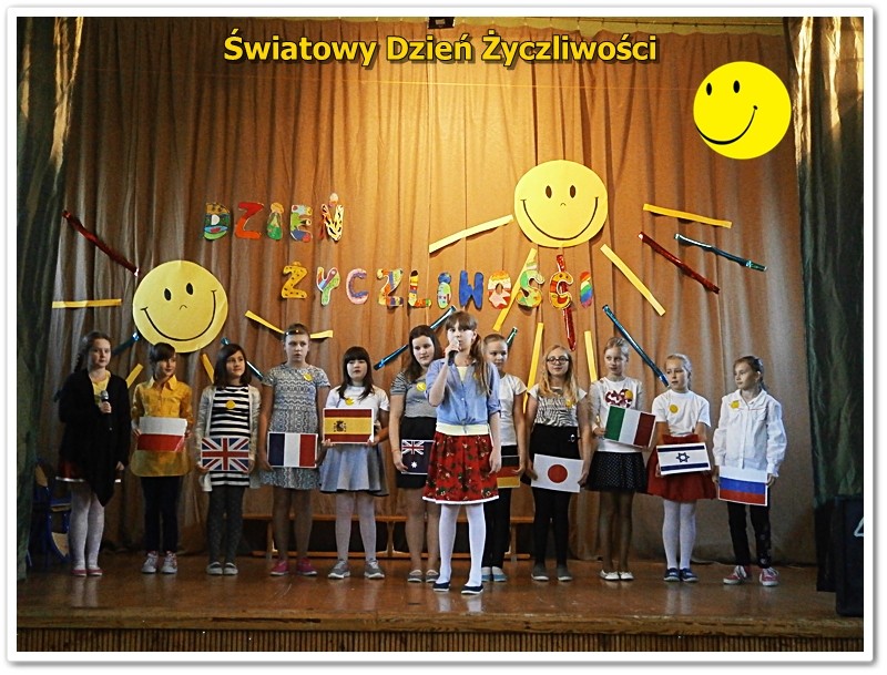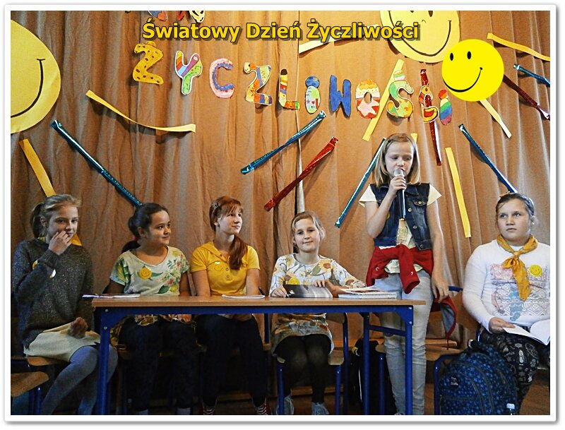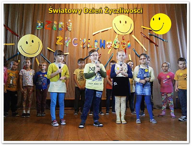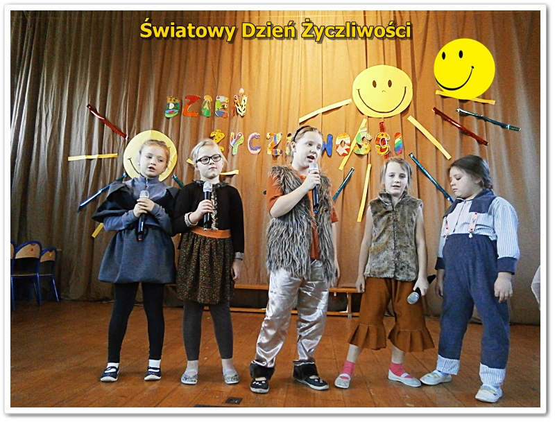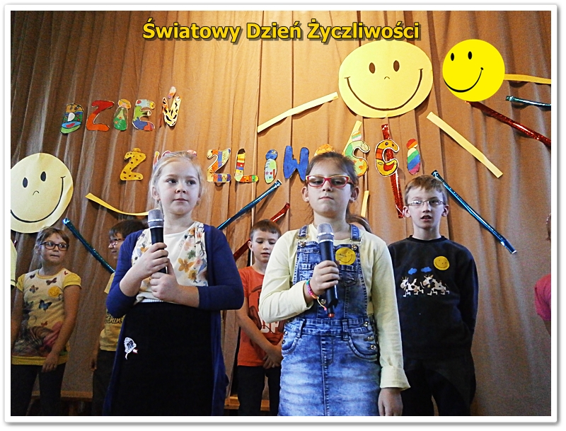 21 listopada na całym świecie, obchodzony jest World hello day, tłumaczony jako Dzień Życzliwości i Uśmiechu. Do święta przygotowywaliśmy się solidnie. Uczniowie klas IV przygotowali okolicznościowe plakaty, którymi ozdobiliśmy szkołę. W bibliotece funkcjonowała "Poczta Życzliwości", gdzie można było zostawić kartki z pozdrowieniami, życzeniami i miłymi słowami. W klasach starszych 4-6 przeprowadzono lekcje na temat znaczenia życzliwości w życiu. Podczas zajęć przeprowadzono plebiscyty na najżyczliwszą osobę w klasie: