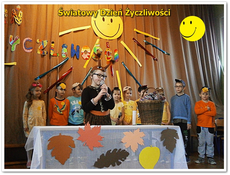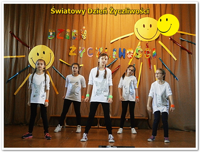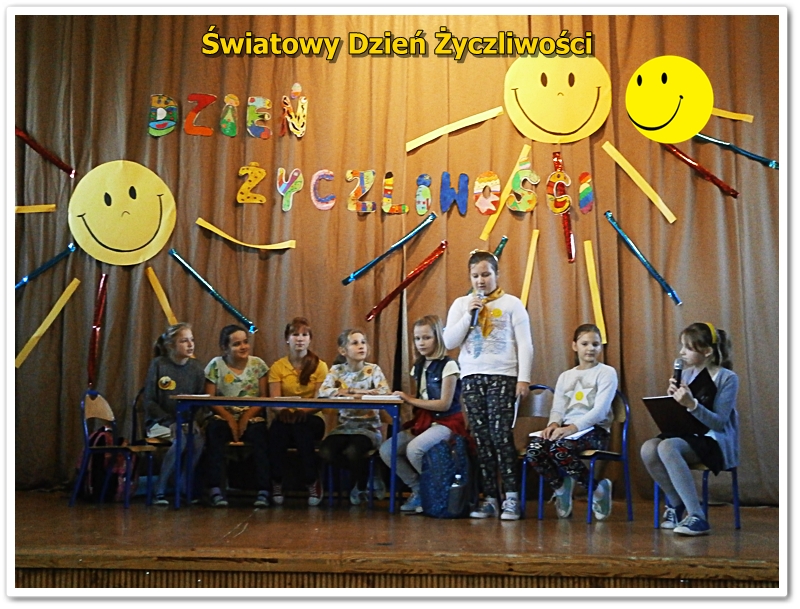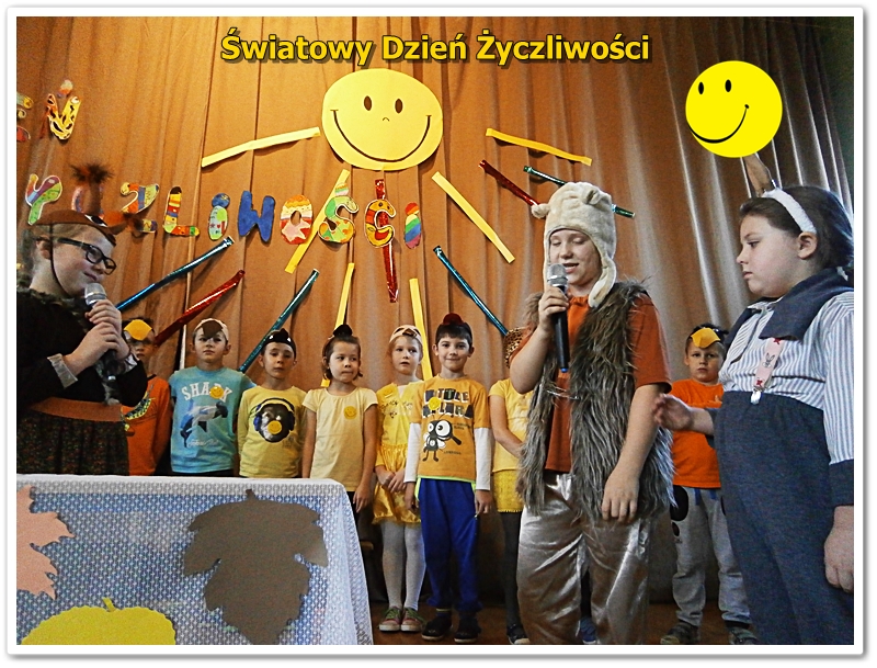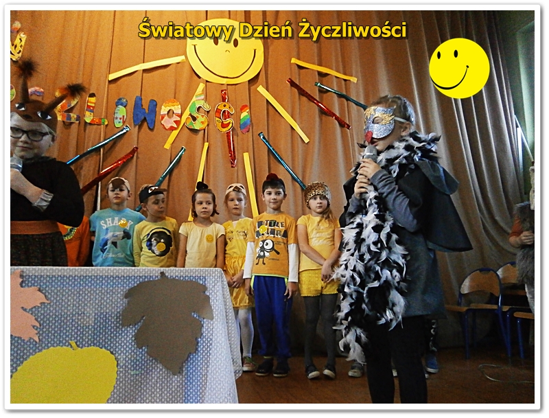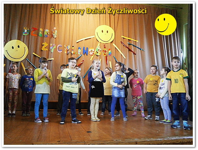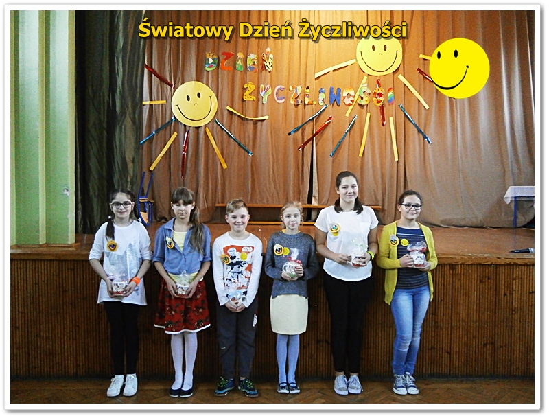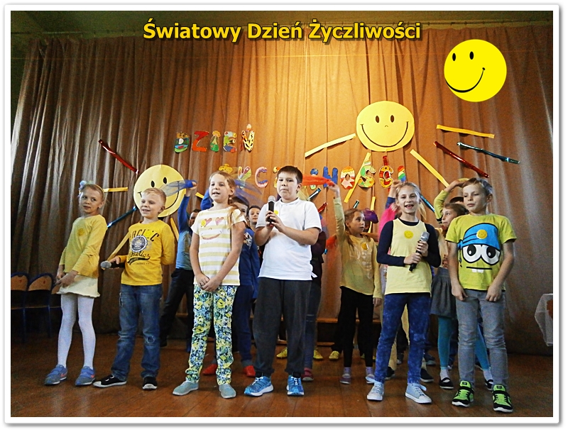 We wtorek 22 listopada Świętowaliśmy Dzień Życzliwości. Wiele osób ubrało się na żółto. Wszyscy uczniowie i nauczyciele otrzymali uśmiechnięte buźki. Odbyła się uroczysta akademia z przedstawieniami, piosenkami i tańcami. Zwycięzcy klasowych plebiscytów otrzymali od Pani Dyrektor ordery życzliwości i drobne upominki. W szkole panował wesoły nastrój i świąteczna atmosfera. Tak naprawdę jednak każdy dzień powinien być pełen życzliwości, uśmiechu i wzajemnej sympatii. Bądźmy życzliwi nie tylko w ten wyjątkowy dzień, ale przez cały rok - mówi pedagog szkolny p.Alicja Szkutek - organizator akademii.
