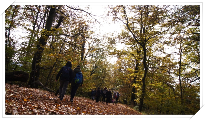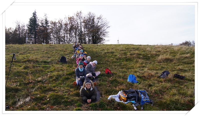 Następnie grupa ruszyła w dół czerwonym szlakiem beskidzkim im. Sosnowskiego w stronę Stożka. Po drodze, przy mogile poległego obywatela Czechosłowacji zapoznały się pokrótce z burzliwą historią okresu po pierwszej wojnie światowej na tym terenie. Kolejnym etapem wycieczki było trawersowanie zbocza Czantorii poza wyznaczonym szlakiem i zapoznanie się z nieuczęszczanym przez turystów traktem. Podczas tego przejścia mogliśmy podziwiać prawdziwe uroki górskiej beskidzkiej jesieni z jej kolorami i zapachami.
