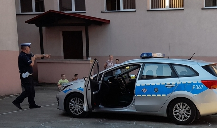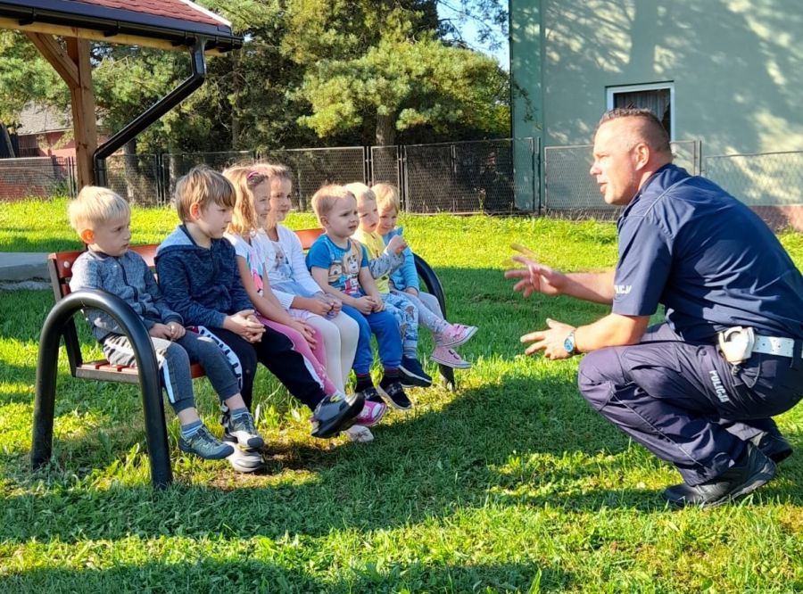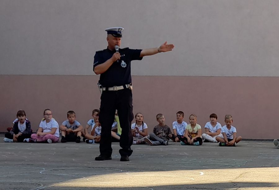 15 września starszy aspirant Szymon Kaźmierczak - policjant Wydziału Ruchu Drogowego KPP w Cieszynie spotkał się z uczniami klas młodszych jak i starszych. Przeprowadził także pogadankę z dziećmi naszej szkolnej filii w Kisielowie.