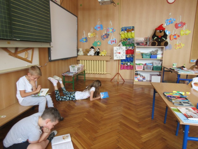 Po kilku tygodniach takiego czytania ,dzieci nabrały nawyku sięgania po książki nawet na przerwach i same dopominały się o ten sposób spędzania czasu w szkole. Dzieci wraz z wychowawczynią p. Lucyną Gołyszny polecają Czytanie Bostońskie, bo pokazuje, że czytać można wszędzie i o każdej porze.