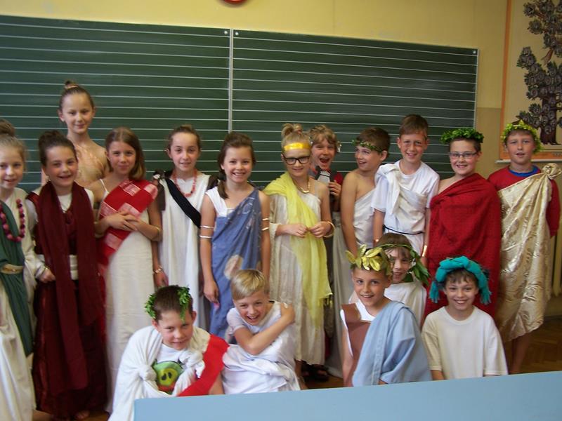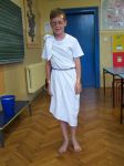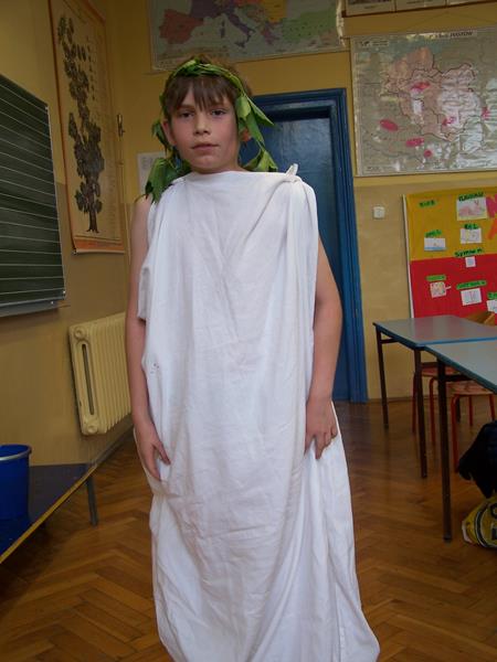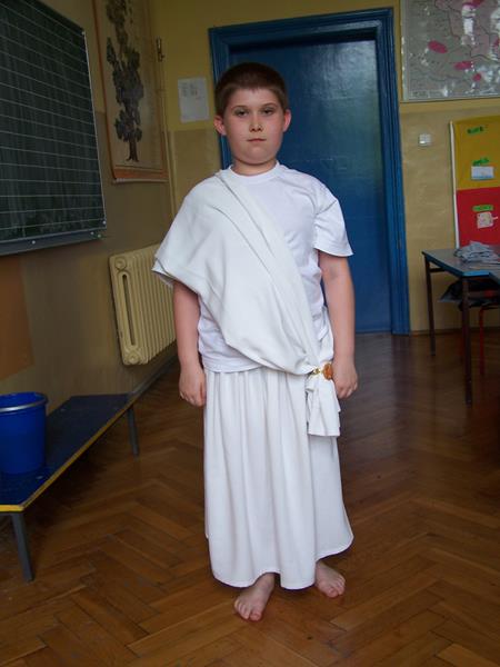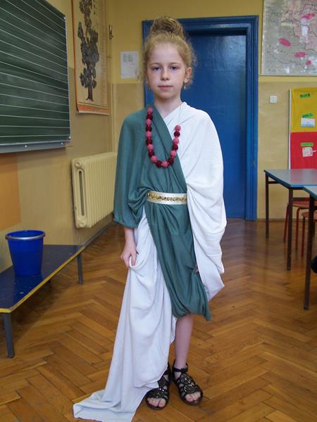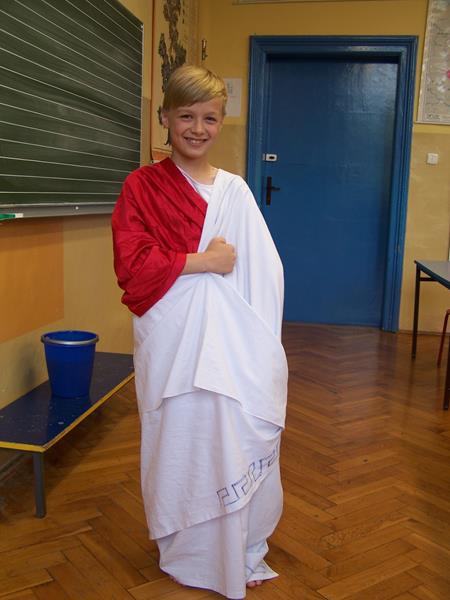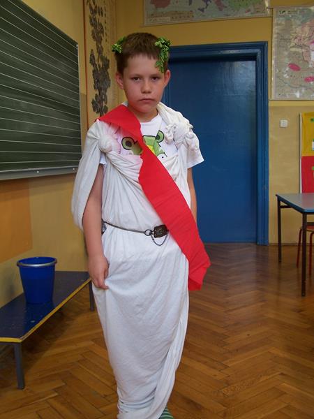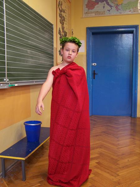Uczniowie klas 4a i 4b brali udział w prezentacjach mających na celu przedstawienie strojów rzymskich patrycjuszy oraz zaprezentowanie życiorysu jednego z wylosowanych cesarzy Imperium. Chłopcy byli przebrani za: Juliusza Cezara, Marka Aureliusza, Nerona itp., a dziewczynki za: Agrypinę, Messalinę, Kalpurnię !