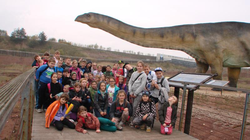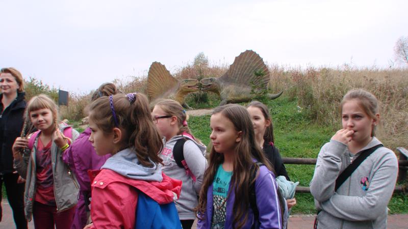 16 października 2014r. klasy czwarte i piąte w ramach poszerzenia wiedzy z zakresu historii i przyrody udały się do Parku Nauki i Rozwoju w Krasiejowie. Tam zostali wplątani w zawiłe losy naszego świata, dołączyli do grona podróżników, by stać się świadkami fascynujących przemian. Przygoda ta rozpoczęła się 66 milionów lat temu, kiedy życie na Ziemi niemalże zostało zgładzone. Niemalże… bo przecież trwa nadal. Dzięki technologii cyfrowej zostaliśmy przeniesieni w czasie i przestrzeni. Otrzymaliśmy zastrzyk ogromnej wiedzy o nas samych, o tym jak staliśmy się ludźmi.