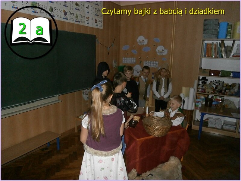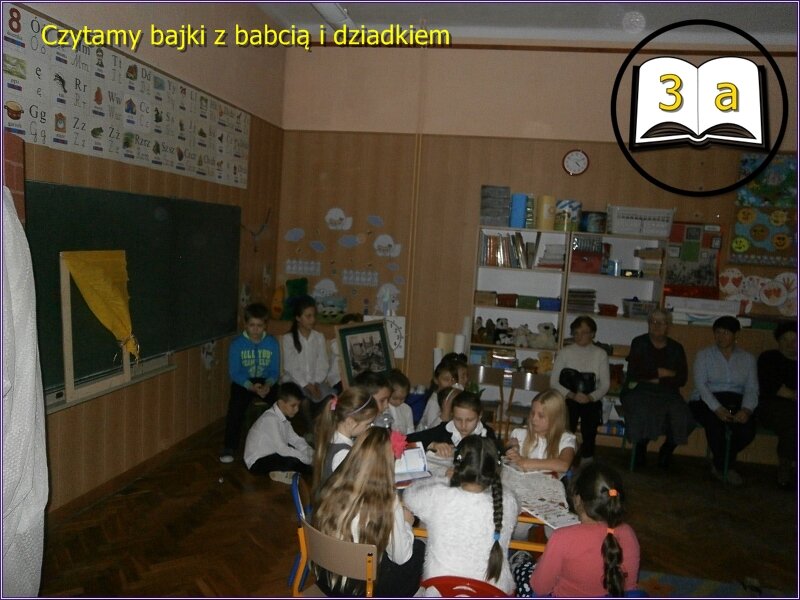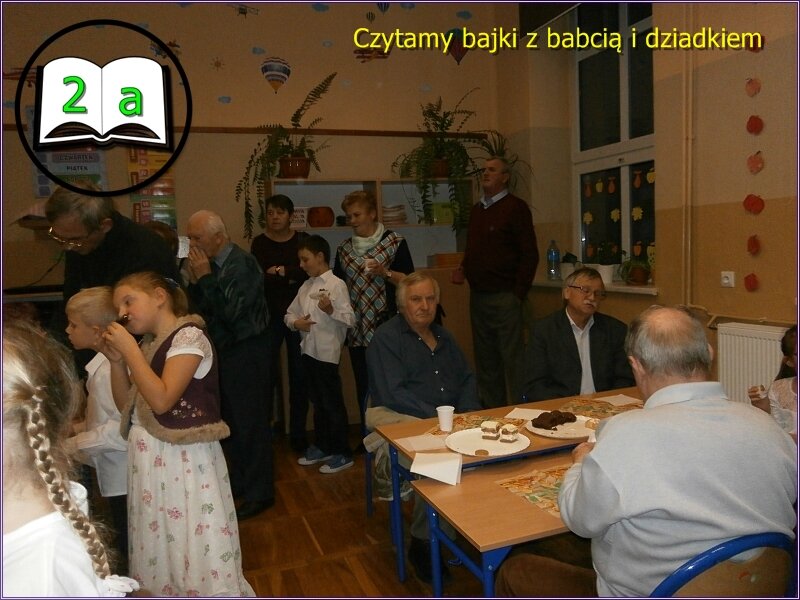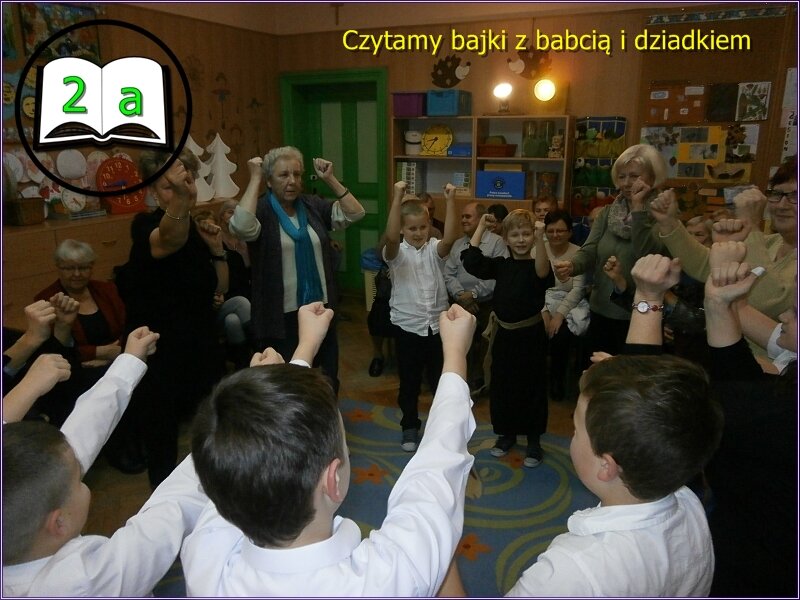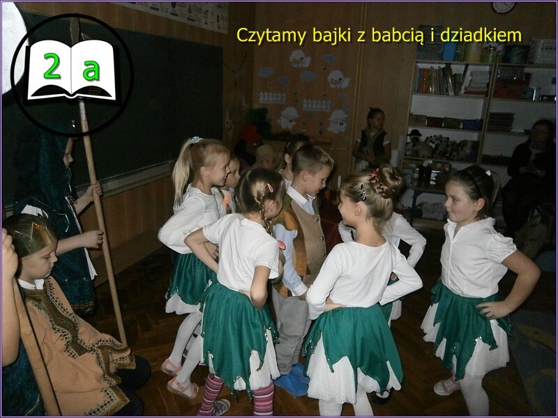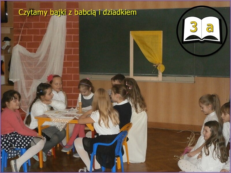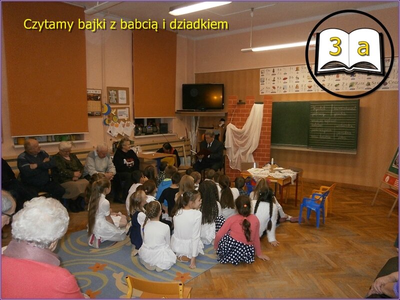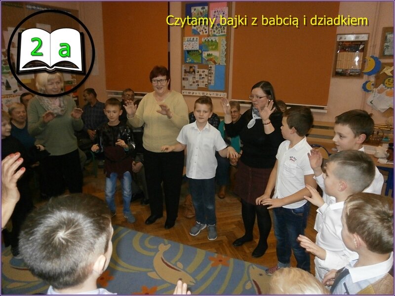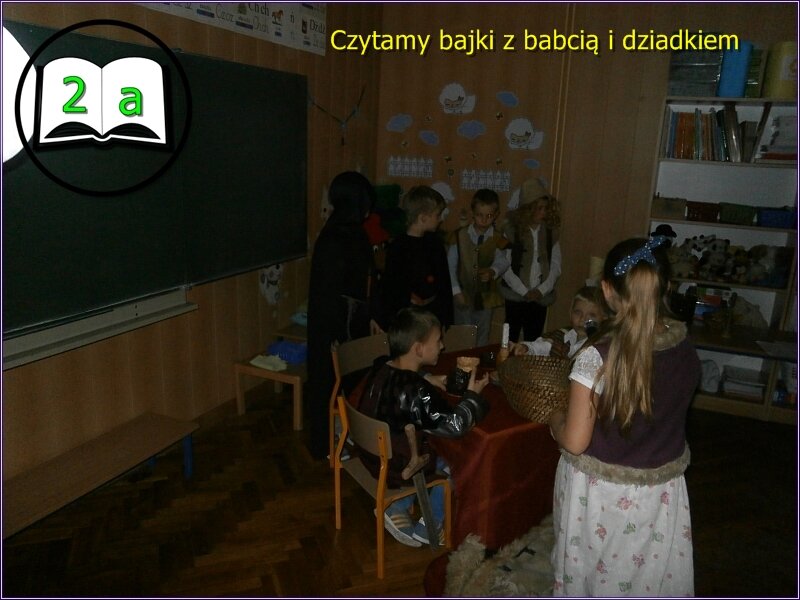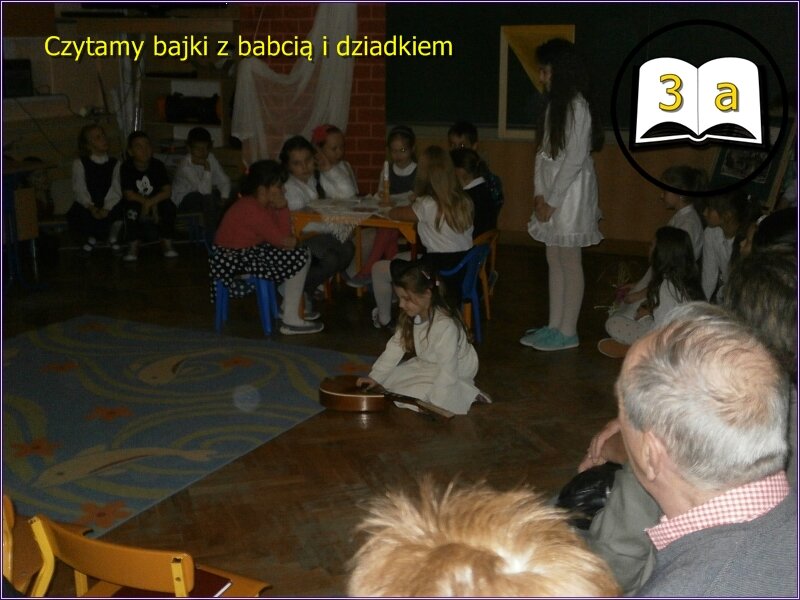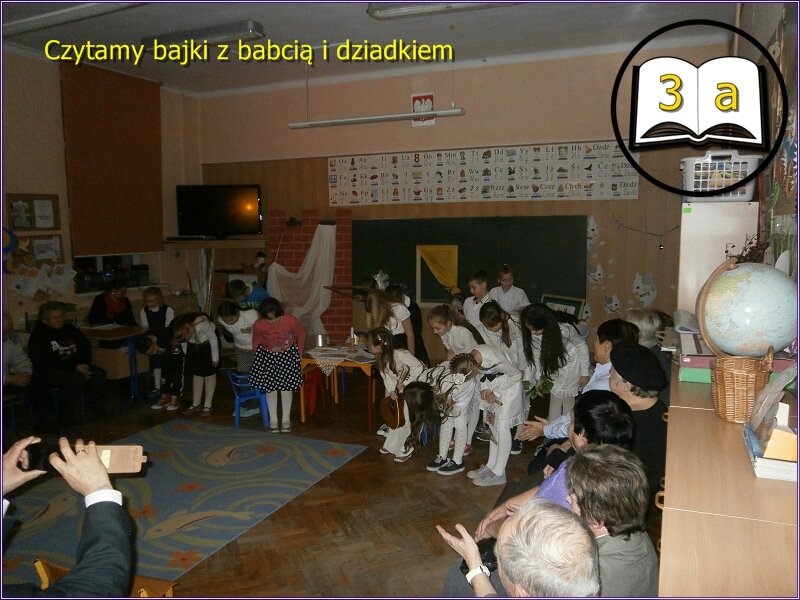 Uczniowie klasy 2a i 3a zaprosili babcie i dziadków, aby wspólnie spędzić popołudnie i wieczór w szkole przy lekturze bajek i legend. Drugoklasiści wysłuchali legendy o "Śpiących rycerzach w Tatrach" oraz o "Powstaniu latarni na Rozewiu" - które były czytane przez babcię od Kai oraz babcię Patryka. Trzecioklasiści zapoznali się z rodzimą twórczością Gustawa Morcinka i wysłuchali opowiadania "O Zuzance i utopcach" oraz legendy "O Czarnej Księżnej", które czytała babcia Angeliki i dziadek Oli. Atrakcją dla gości były także występy artystyczne w postaci przedstawień teatralnych.
