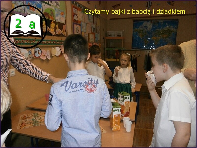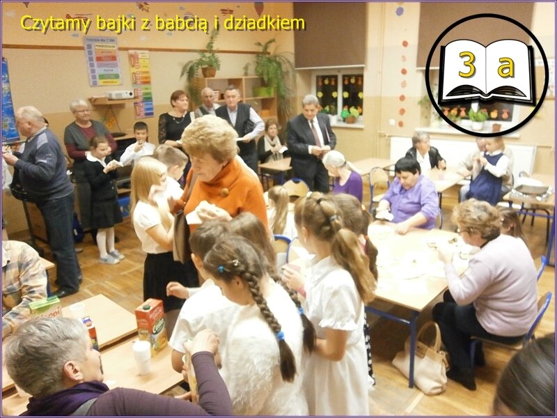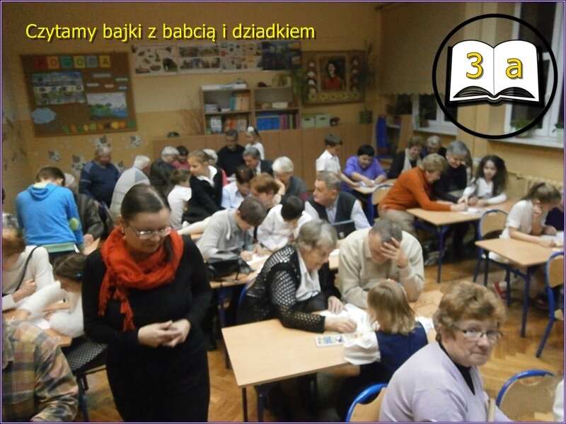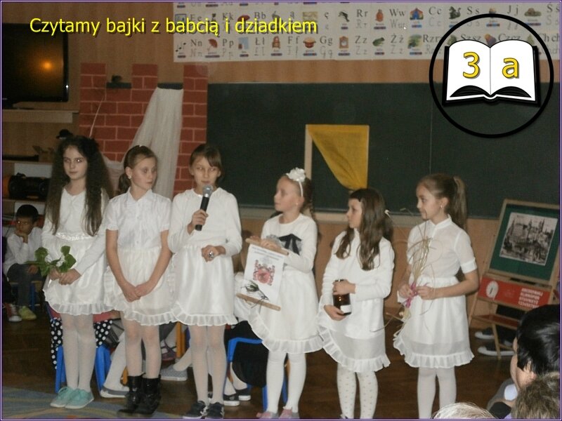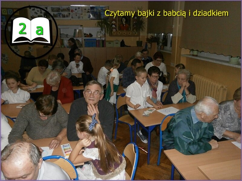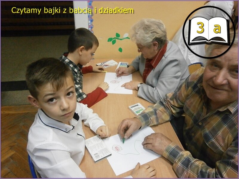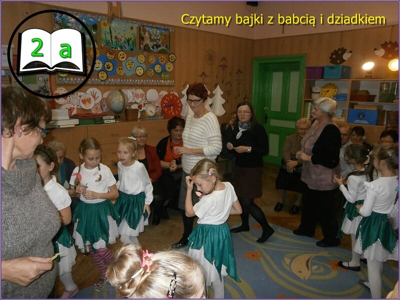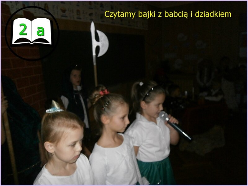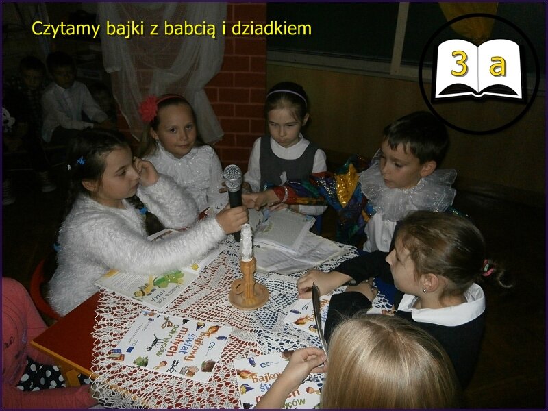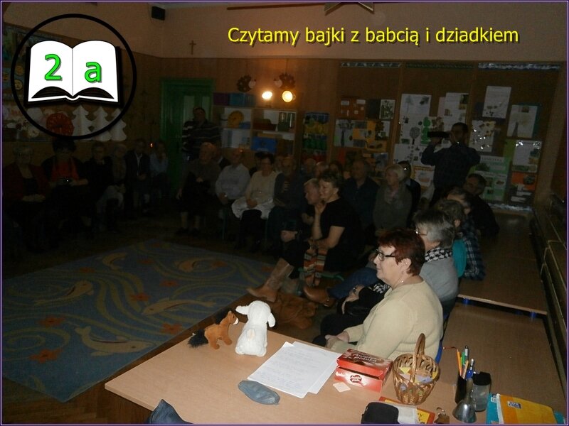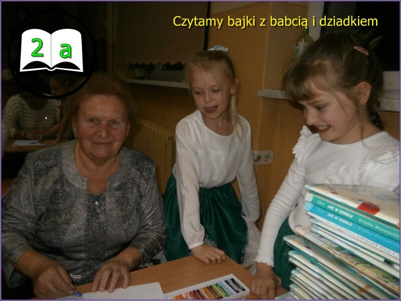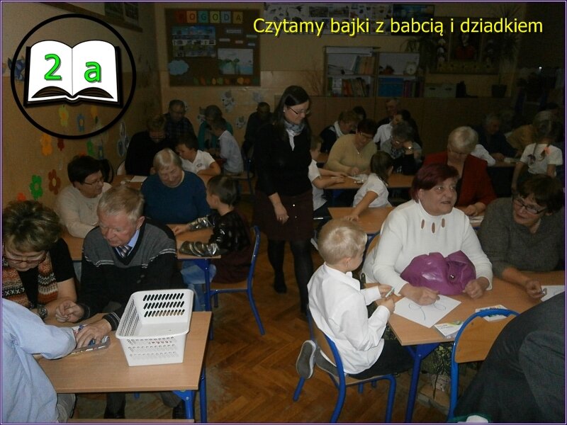 Uczniowie klasy 2a i 3a zaprosili babcie i dziadków, aby wspólnie spędzić popołudnie i wieczór w szkole przy lekturze bajek i legend. Drugoklasiści wysłuchali legendy o "Śpiących rycerzach w Tatrach" oraz o "Powstaniu latarni na Rozewiu" - które były czytane przez babcię od Kai oraz babcię Patryka. Trzecioklasiści zapoznali się z rodzimą twórczością Gustawa Morcinka i wysłuchali opowiadania "O Zuzance i utopcach" oraz legendy "O Czarnej Księżnej", które czytała babcia Angeliki i dziadek Oli. Atrakcją dla gości były także występy artystyczne w postaci przedstawień teatralnych.