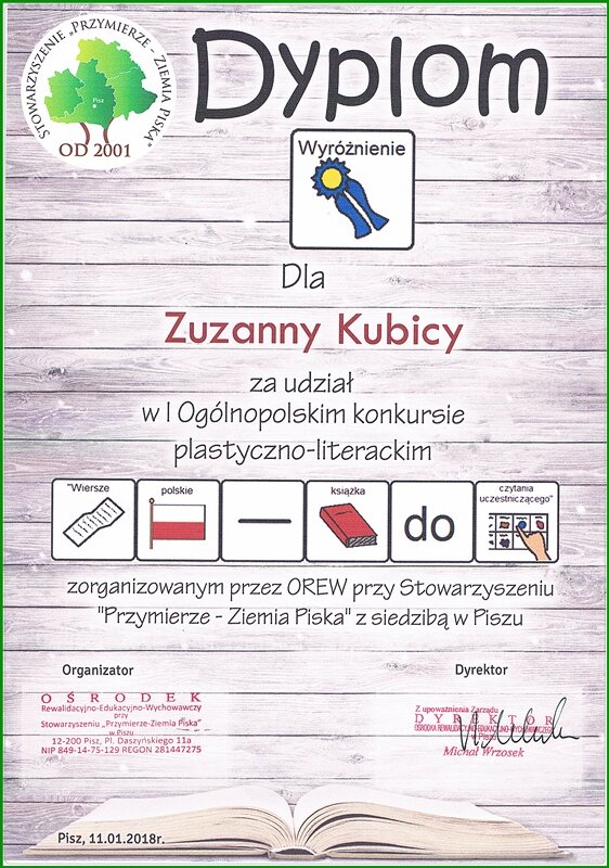 Lena Sikora i Zuzia Kubica z kl.2a wyróżnione w Ogólnopolskim Konkursie Plastyczno-Literackim pt. „WIERSZE POLSKIE – KSIĄŻKA DO CZYTANIA UCZESTNICZĄCEGO”