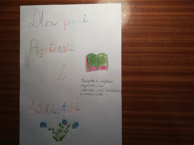 8 maja obchodzimy Dzień Bibliotek i Bibliotekarzy. Z tej okazji, uczniowie naszej szkoły przygotowali laurki dla pani Agnieszki.
