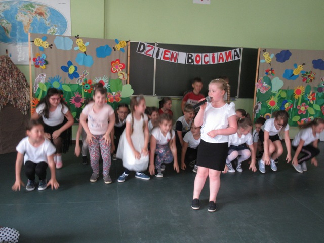 Dzieci z klas 1-3 przygotowały niecodzienną lekcję. Była to lekcja poświęcona bocianom, naszym pięknym, polskim ptakom. Każda klasa w kilku minutach, przedstawiła wybraną przez siebie formą wiadomości o bocianach.