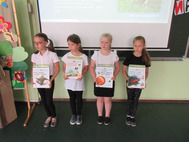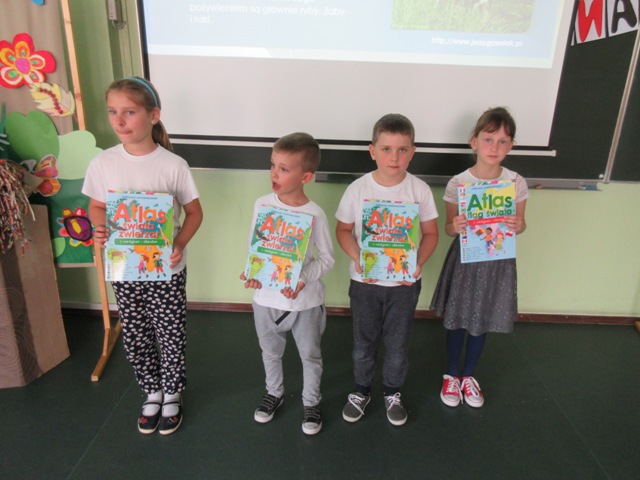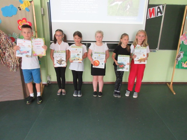 Rozdano jeszcze dyplomy i nagrody w wiosennych konkursach; recytatorskim, kaligraficznym i ortograficznym. Nagrody i dyplomy ufundowała Spółdzielnia Uczniowska i TPD.W przygotowaniu Dnia Bociana pomogli także: p. Agnieszka Gołyszny i p. Andrzej Kloske, całość prowadziła p. Lucyna Gołyszny.