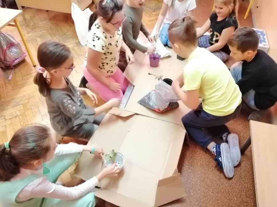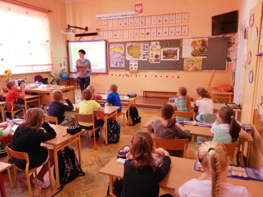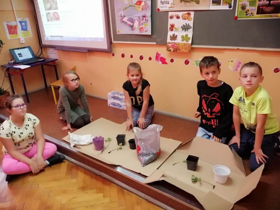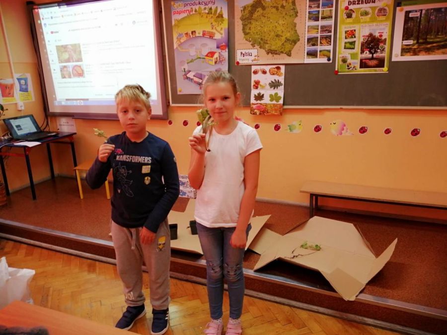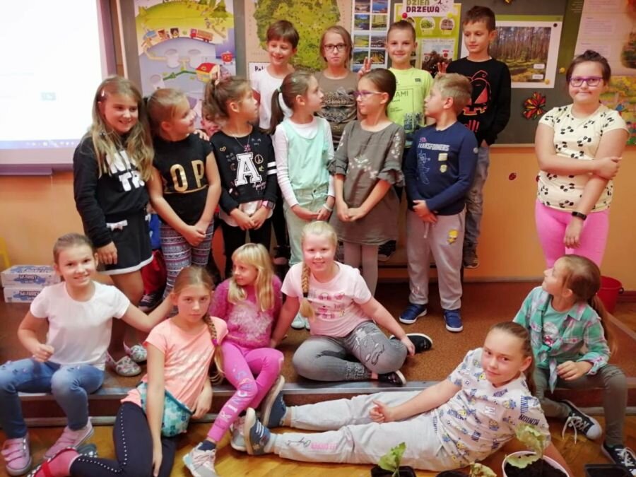 w klasie 3b, na lekcji środowiska dzieci obejrzały prezentację multimedialną „Dzień drzewa” oraz film edukacyjny o znaczeniu drzew. Wysłuchały opowiadania „Drzewa” z książki „Gang Słodziaków. Przyjaciele mogą wiele, czyli magia z leśnej polany”. Rozwiązywały zagadki oraz posadziły młode dęby