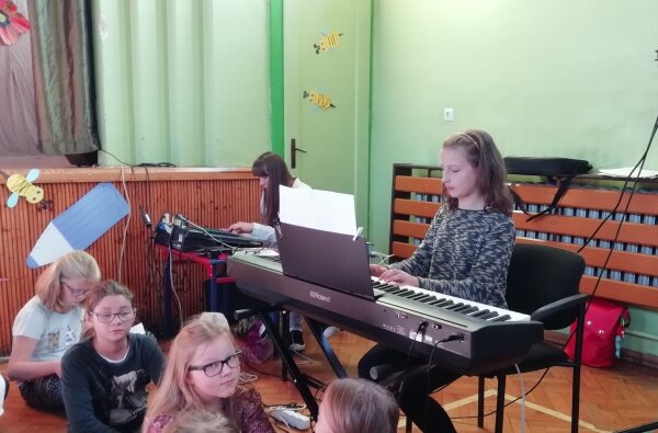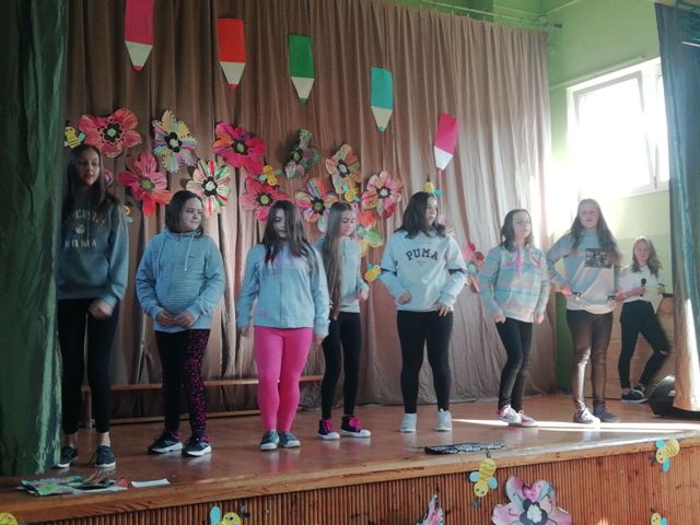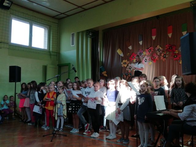 Dnia 12.10.2018r na lekcji 3 zebraliśmy się wszyscy na sali gimnastycznej aby świętować Dzień Edukacji Narodowej. Na początku pani Dyrektor przywitała wszystkich uczniów i nauczycieli. Jako pierwszy zaprezentował się chór szkolny pod opieką pani Aliny Kubaszczyk. Drugim punktem, programu były popisowe utwory wykonane przez Marię Skałkę i Michalinę Świerkosz.