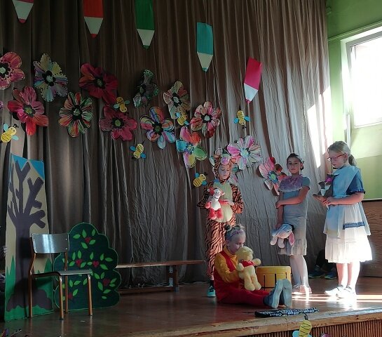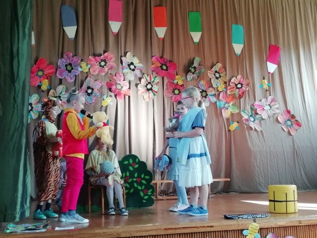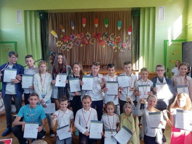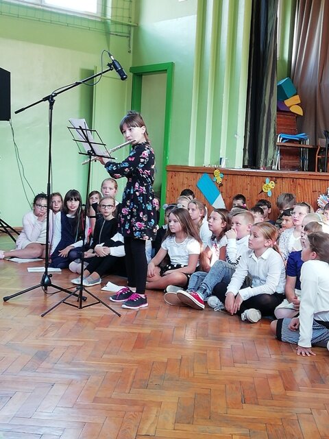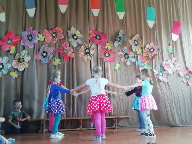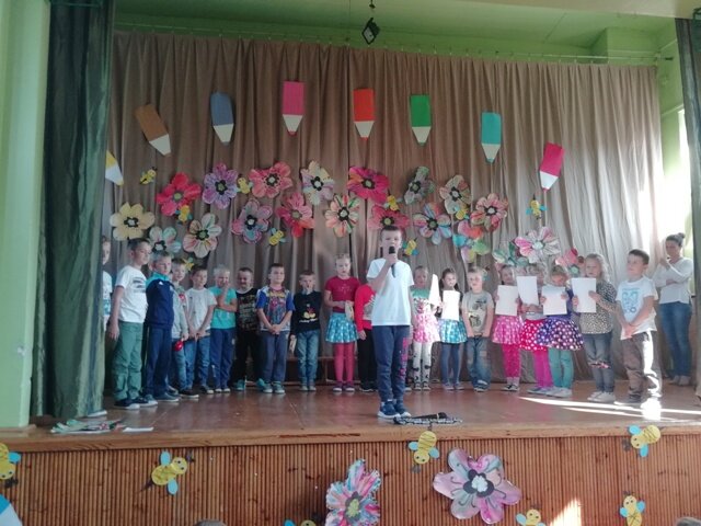pt. "Krzyś idzie do szkoły", które przygotowała pani Lucyna Gołyszny. Z kolei zespół taneczny "Świetliki" pod opieką pani Agnieszki Gołyszny zaprezentował się w nowoczesnym tańcu. Jako ostatni wystąpili uczniowie klasy 1b przygotowani przez wychowawcę panią Urszulę Łamacz. Pierwszaki recytowały wierszyki, śpiewały piosenkę oraz przedstawiły krótki układ taneczny. Na koniec akademii zostały wręczone medale i dyplomy za udział