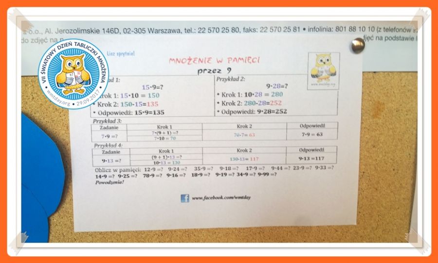 W dniu 29.09.2017 r. świętowaliśmy w naszej szkole VII ŚWIATOWY DZIEŃ TABLICZKI MNOŻENIA. Uczniowie naszej Szkoły przystąpili do konkursu matematycznego koordynowanego przez Małgorzatę Kuschnik.
