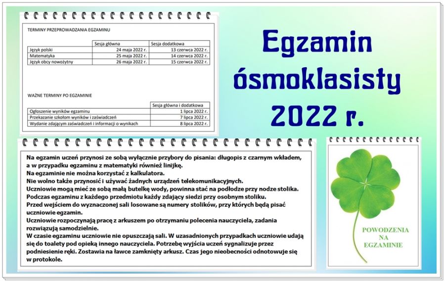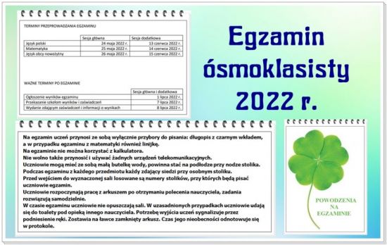 We wtorek 24 maja br. rozpoczynają się egzaminy ósmoklasistów.