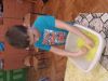 Tworzyły masę mydlaną, dodawały lawendę, mieszały, ugniatały, wybijały za pomocą foremek mydełka w kształcie serduszek, kwiatów, gwiazdek, ludzików. Gotowe mydełka zostały ozdobnie zapakowane jako pachnąca ozdoba do powieszenia w łazience. Były to prezenty, które dzieci podarowały swoim Babciom z okazji ich święta.