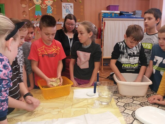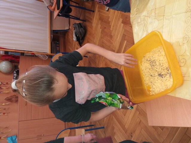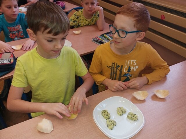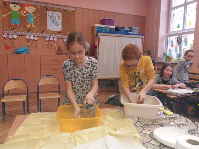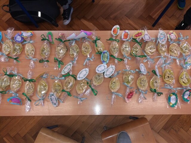 W klasie trzeciej zorganizowano edukacyjne, kreatywne warsztaty robienia kosmetyków naturalnych. Były to lawendowe mydełka. Dzieci samodzielnie wykonały mydełka z dodatkiem suszonych kwiatów lawendy na bazie mydła naturalnego.