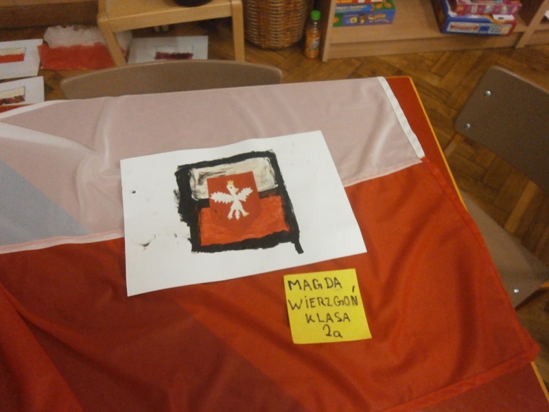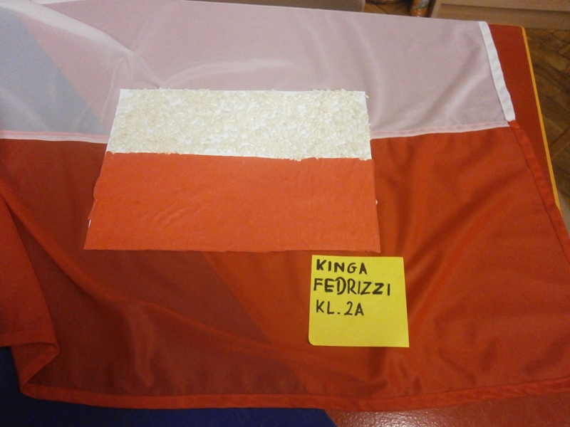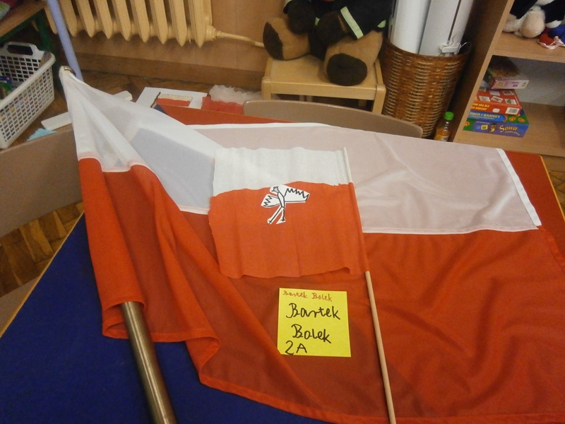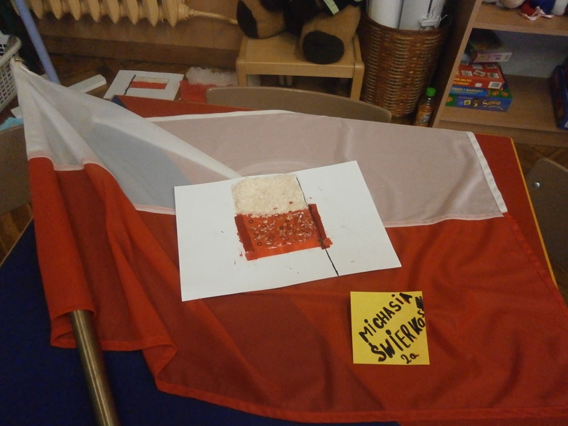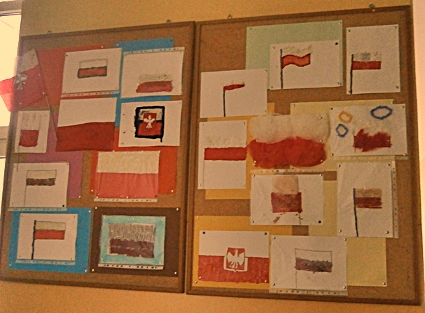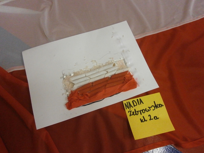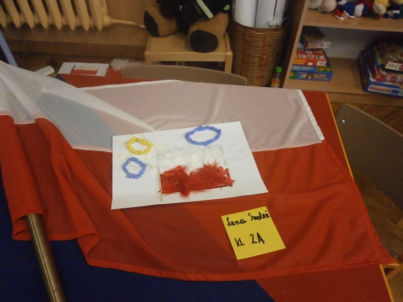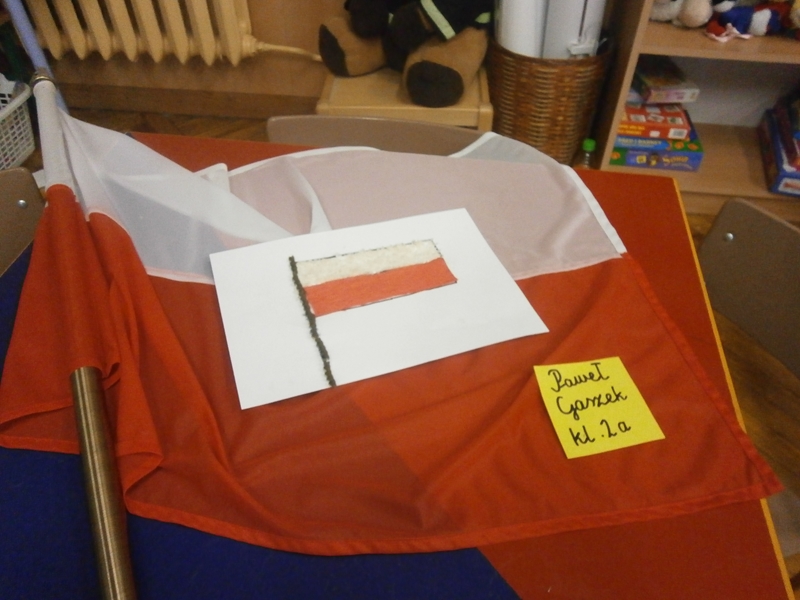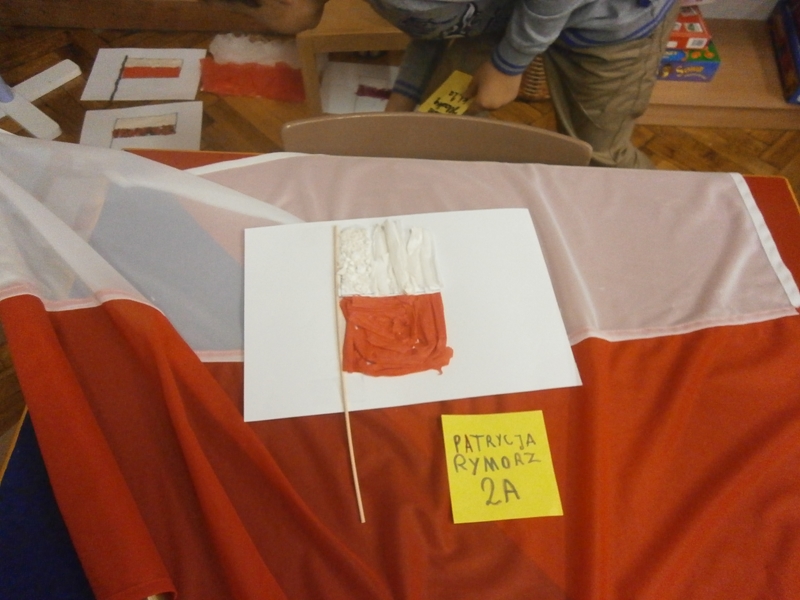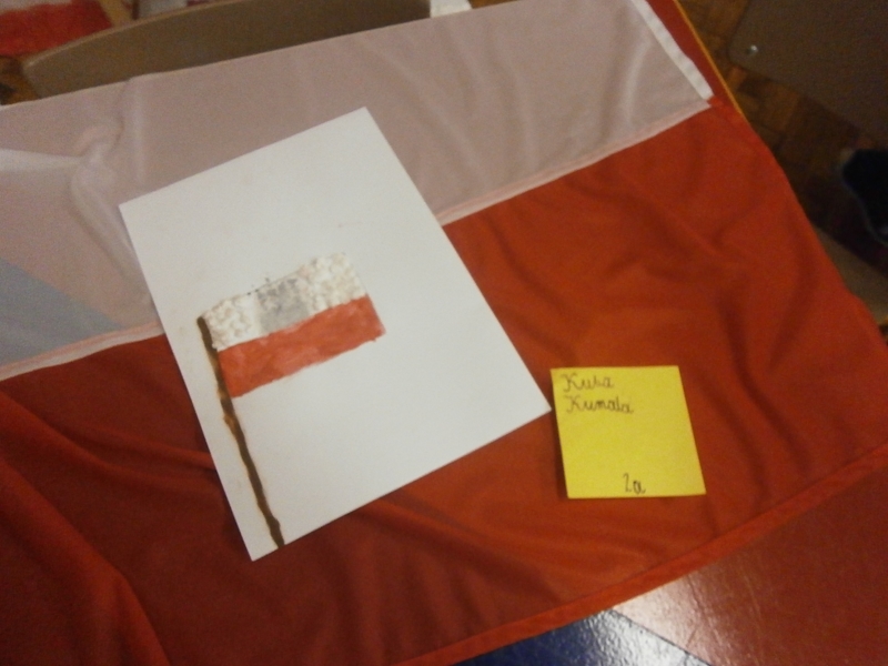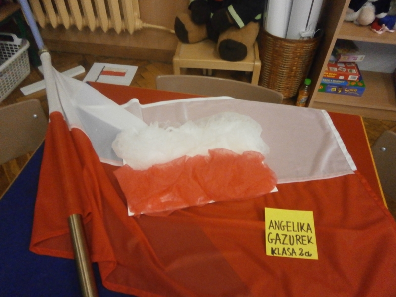 Uczniowie klasy 2a z okazji Święta Niepodległości wykonywali flagi Polski wykorzystując różne materiały(np.ryż, grysik, makaron, cekiny, piórka ...) i różne techniki plastyczne. Wśród uczniów klas 4 przeprowadzono głosowanie na najciekawsze i najbardziej oryginalne flagi.