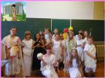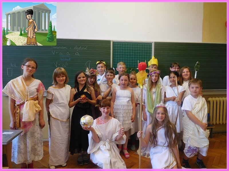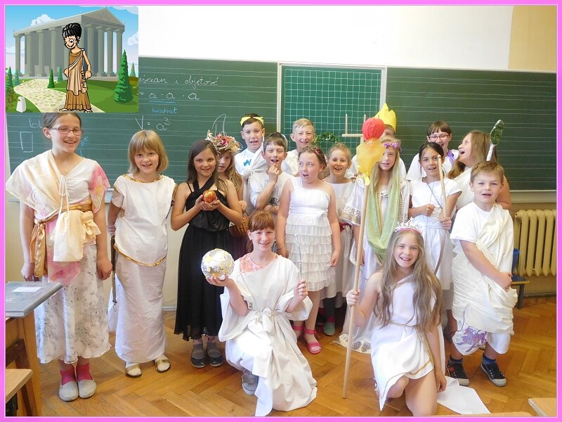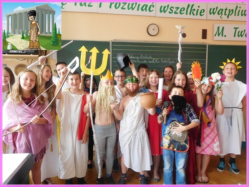 Jak każdego roku, tak i w tym w klasach czwartych w ramach lekcji historii odbyły się prezentacje dotyczące bogów greckich. Każdy uczeń miał do wyboru jednego z wielu bogów greckich. Należało samodzielnie wykonać strój oraz przygotować parę zdań na temat tej postaci. Uczniowie świetnie wywiązali się z tego zadania.Stroje były rewelacyjne ! Gratulacje.