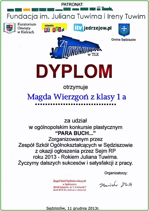 Rok Tuwimowski za nami (2013), ale niespodzianką są nagrody, które nadeszły w ostatnim czasie i zostały wręczone na apelu szkolnym. Nasi uczniowie brali udział w ogólnopolskim konkursie plastycznym pt."Para buch...", który odbył się jesienią 2013 r.