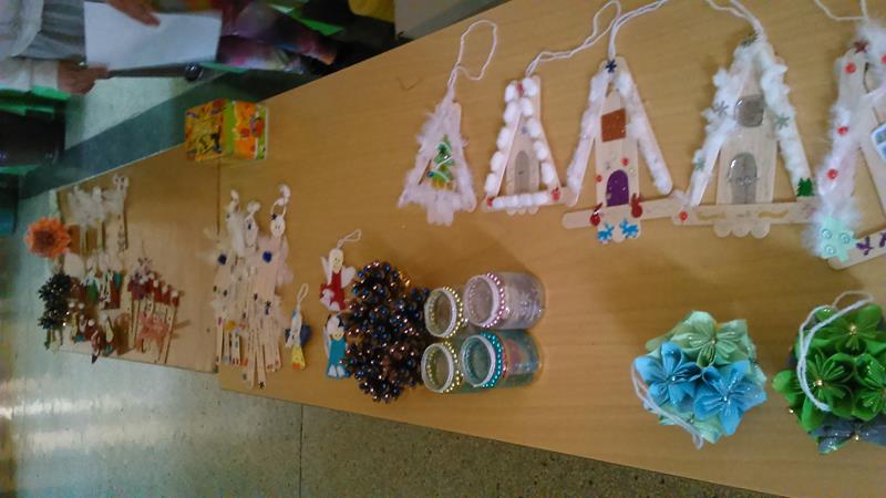 Każdego roku organizujemy w naszej szkole kiermasz ozdób świątecznych wykonanych przez uczniów. Poniżej prezentujemy niektóre prace zrobione na zajęciach świetlicowych i na zajęciach kółka plastycznego.