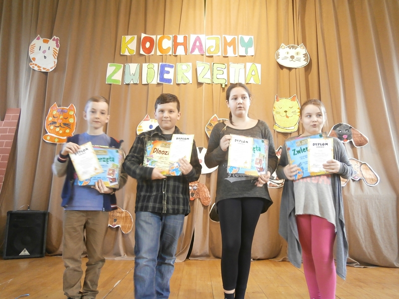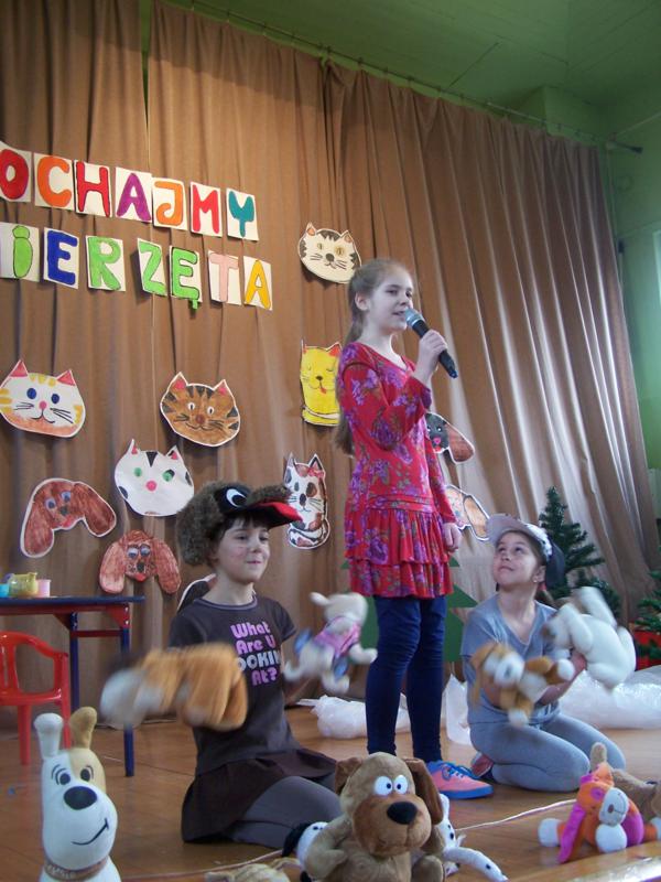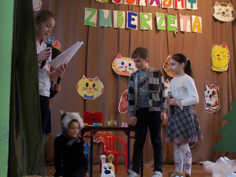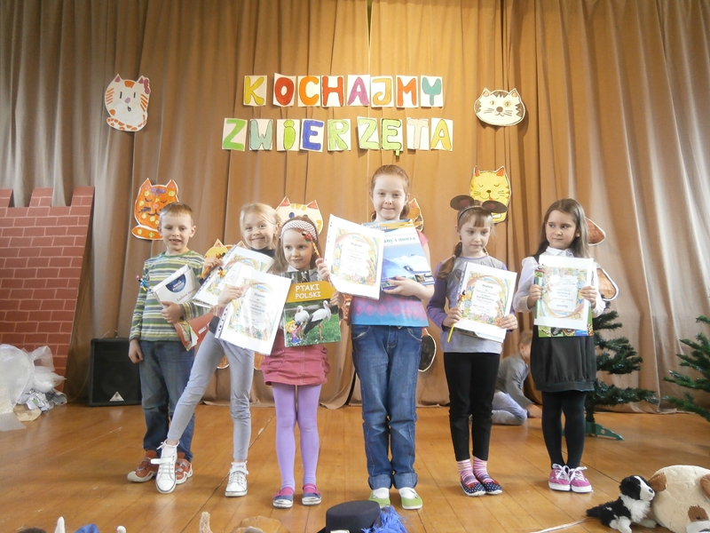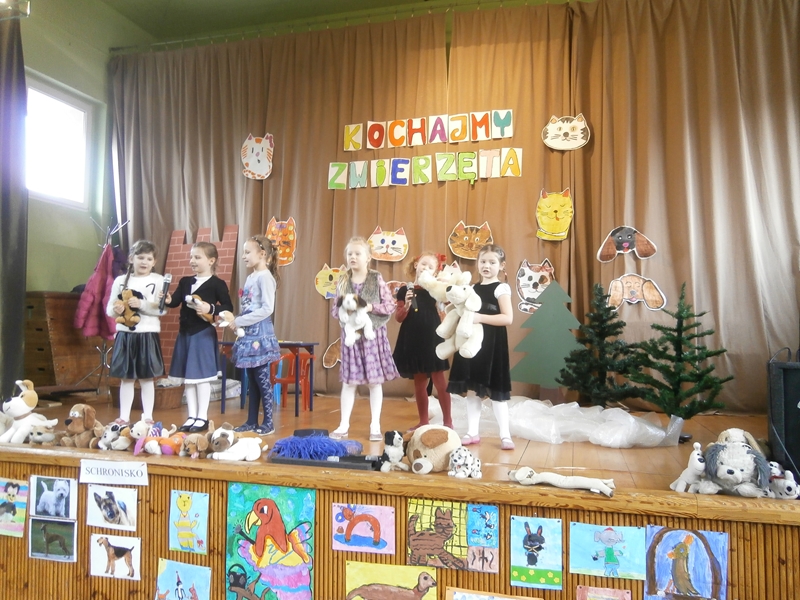 Już od kilku lat w naszej szkole trwa akcja "Ratujmy zwierzaki", która organizowana jest przez świetlicę szkolną i samorząd uczniowski. W czasie roku szkolnego organizowana jest zbiórka karmy i niezbędnych rzeczy dla podopiecznych zaprzyjaźnionego z nami schroniska. Coroczna akademia poświęcona tej tematyce przedstawia potrzebę miłości dla tych zwierząt. Świetlica szkolna zorganizowała także konkurs plastyczny"Zwierzaki cudaki" i nagrodziła uczestników: