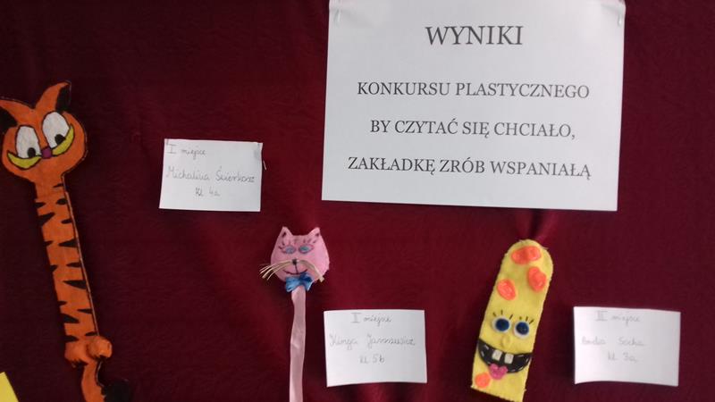 Wyniki konkursu plastycznego zorganizowanego przez bibliotekę szkolną „By czytać się chciało, zakładkę zrób wspaniałą”