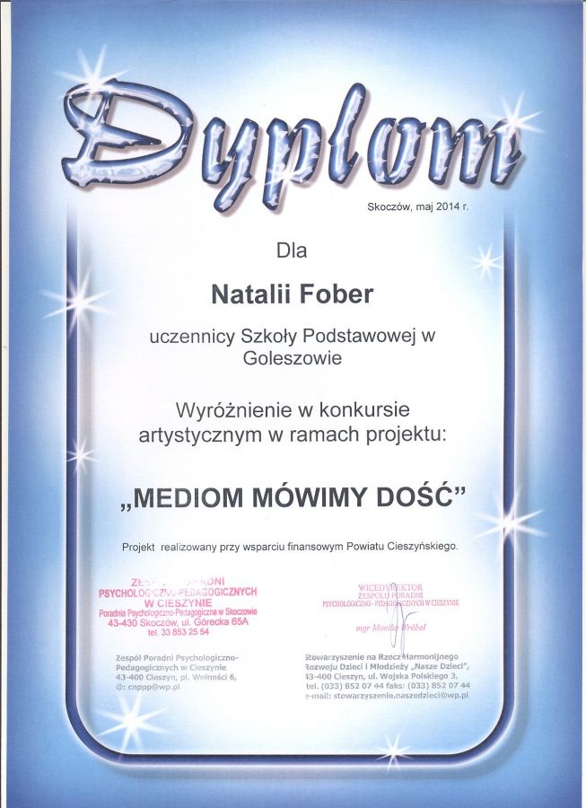 Wyróżniona została Natalia Fober z kl.3a.