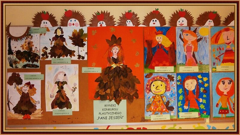 Świetlica szkolna zorganizowała jesienny konkurs na najpiękniejszy obrazek pt. Pani Jesień. Wszystkie otrzymane prace były bardzo pomysłowe i ciekawe. Dzieci użyły różnych technik plastycznych. Zwycięzcom wręczono nagrody na apelu szkolnym.