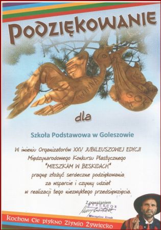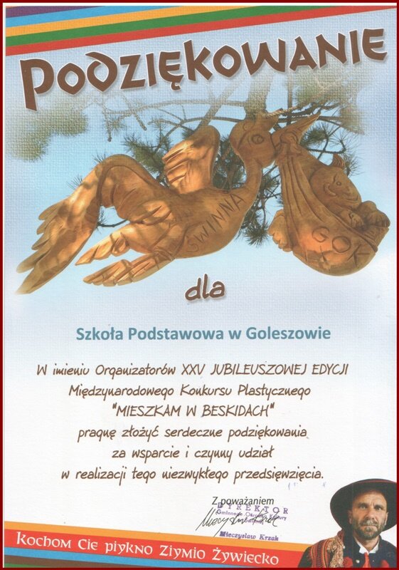 10 kwietnia 2018 r. w SP 1 w Cieszynie odbyła się uroczystość podczas której wręczono nagrody w Międzynarodowym Konkursie Plastycznym „Mieszkam w Beskidach”. To już kolejna edycja – 25 konkursu, w którym co roku bierze udział wielu uczestników.