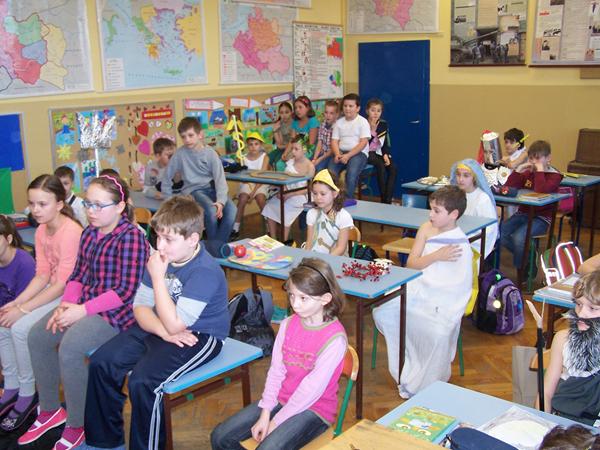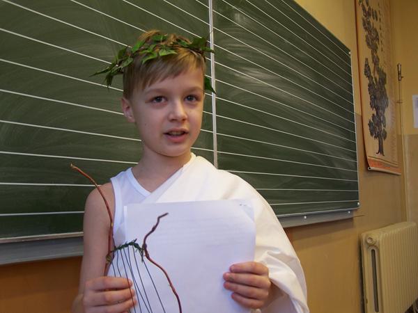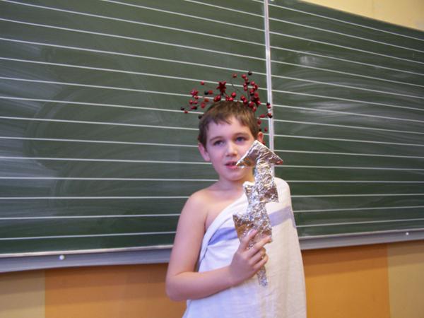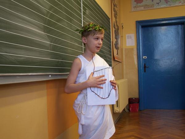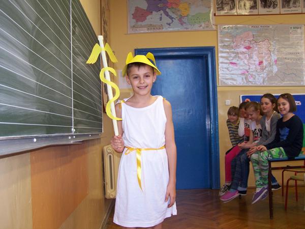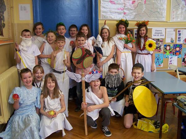 Mity, mity........,ciekawe opowieści o życiu i przygodach bogów w klasie 4. Szczególnie popularne są te dotyczące greckich bóstw. Uczniowie klas czwartych przygotowali na lekcje historii prezentacje poświęcone wybranemu patronowi. Byli więc: Zeus, Demeter, Hestia, Hefajstos, Apollo, Hera, Artemida i wielu innych, o których wygłaszali prelekcję i samodzielnie wykonali stroje. Rezultat był zachwycający, a uczniowie przygotowani rewelacyjnie! Popatrzcie zresztą sami.