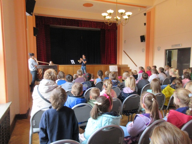 18 października w Gminnym Ośrodku Kultury w Goleszowie gościli muzycy z Filharmonii z Gliwic. Na koncert w wykonaniu tych artystów udali się uczniowie klas pierwszych, drugich i trzecich. Dzieci wysłuchały fragmentów utworów muzyki klasycznej na fortepian i trąbkę, Były to utwory Ludwiga van Beethovena. Były zgadywanki muzyczne, zabawy taneczno- ruchowe oraz gry na instrumentach perkusyjnych niemelodycznych. Ciekawym instrumentem okazała się trąbka jako przykład instrumentu dętego blaszanego. Godzina z muzyką "na żywo" była bardzo ciekawa i przyniosła dzieciom wiele radości.