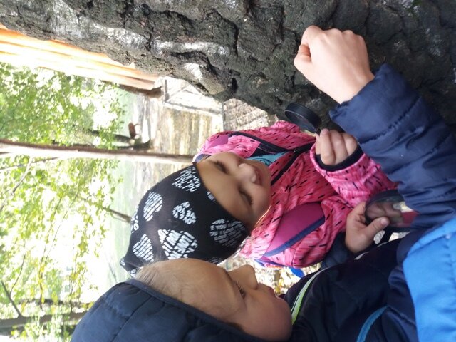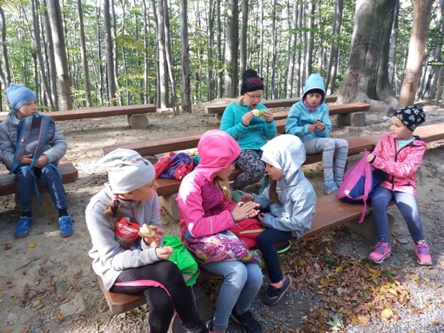 6 października. Dzieci obserwowały warstwy roślin w lesie, czyli korony drzew, podszyt, runo leśne i ściółkę, podglądały życie leśnych zwierząt, podziwiały loty drapieżnych ptaków, słuchały szumu lasu. Swoje spostrzeżenia utrwaliły na ciekawych fotografiach. Oto kilka zdjęć.