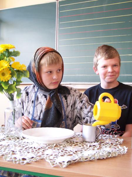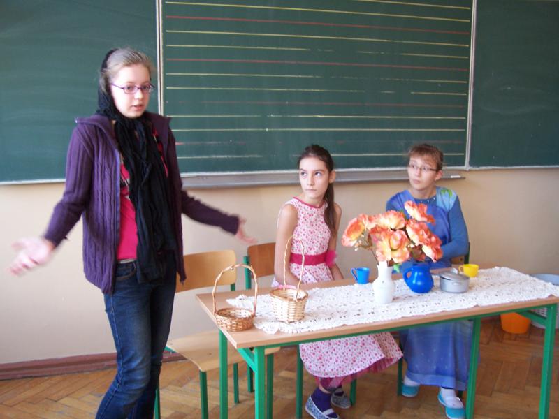 Uczniowie klas szóstych na lekcji języka polskiego przedstawiali fragment tekstu "Balladyna". Sami spośród siebie wybierali reipera oraz musieli samodzielnie wykonać stroje i przygotować scenografię. Zabawa była przednia! Stroje okazały się rewelacyjne. Dzieci bawiły sie wspaniale i stwierdziły, że mogą przygotowywać więcej takich przedstawień.