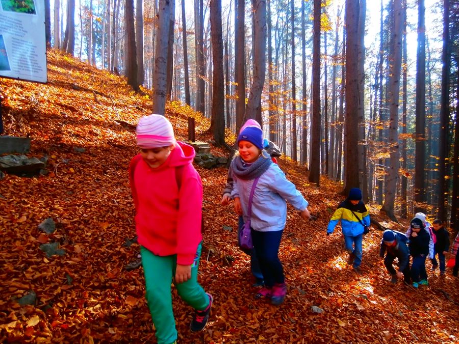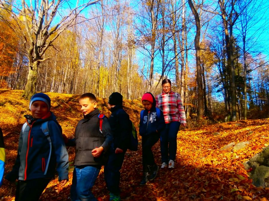 4 listopada korzystając z pięknej pogody klasa 2a,3a wybrały się na wycieczkę szlakami jesiennej przyrody do Ustronia Jaszowca. Uczniowie mieli okazję poznać florę i faunę naszych pięknych Beskidów oglądając piękne ekspozycje i słuchając ciekawych opowiadań leśniczych. Niezwykle ciekawa była także wyprawa do lasu, gdzie kilkukilometrowy marsz ścieżkami edukacyjnymi wzmógł apetyty, dzięki czemu pieczone kiełbaski smakowały doskonale. Warto podkreślić, że taka lekcja przyrody na żywo pozwoliła w pełni zrealizować zagadnienia programowe dotyczące lasu, jego warstw, mieszkańców, a także przygotowywania się przyrody do zimy.