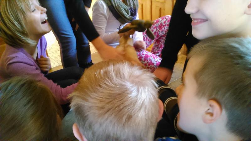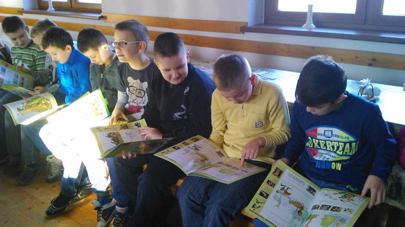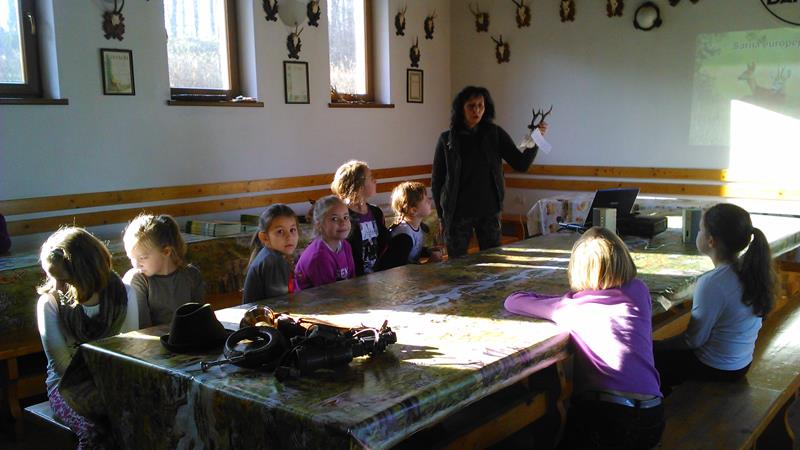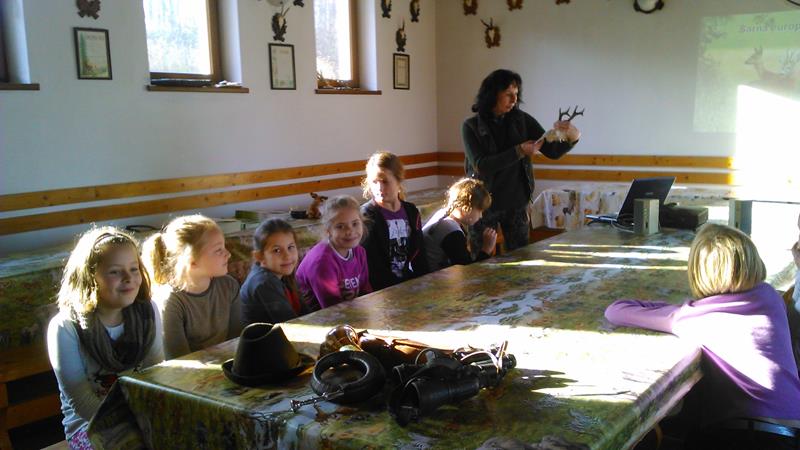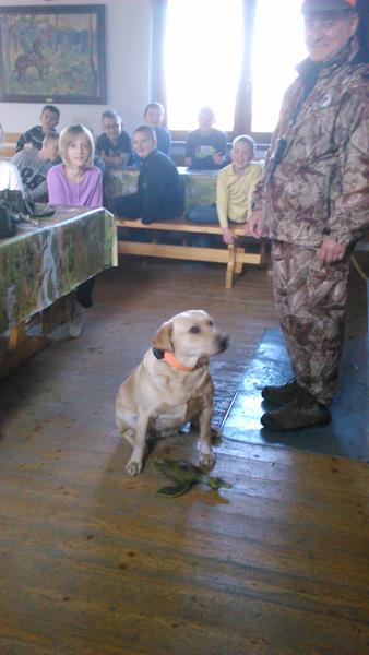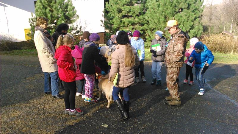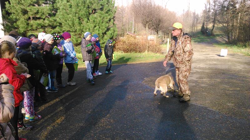 17 listopada wzięliśmy udział w spotkaniu z panią Bernadettą Dziwoki z Koła Łowieckiego "Hubertus" w Goleszowie. Spotkanie było wspaniałą lekcją przyrody na której dowiedzieliśmy się jakie dary kryje las i czym zajmują się myśliwi. Poznaliśmy tradycję i obyczaje, kultywowane przez dzisiejszych łowców. Zobaczyliśmy jak ubierają się myśliwi na łowy, jaki mają sprzęt oraz poznaliśmy ich język. Pani Bernadetta wyjaśniła nam jak nazywają się poszczególne części ciała zwierząt w gwarze myśliwskiej. Wspólnie oglądaliśmy slajdy zwierząt występujących w lasach na naszych terenach. Słuchaliśmy odgłosów mieszkańców leśnych . Dowiedzieliśmy się jak należy dbać o o zwierzęta i las, na czym polega gospodarka łowiecka, jak dbać i pomoc zwierzętom przetrwać zimę. W Hubertówce spotkaliśmy również pana Wacława Cholewę, wiceprezesa Koła Łowieckiego, który zabrał na spotkanie z nami sympatyczną sunię- Cynkę. Cynka wykazała się dużą cierpliwością i chętnie popisywała się przed nami umiejętnościami łowieckimi. Nasza wycieczka do Hubertówki była wspaniałą przygodą, dzięki której zdobyliśmy wiedzę o zwierzętach leśnych i łownych.