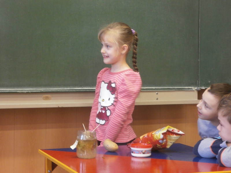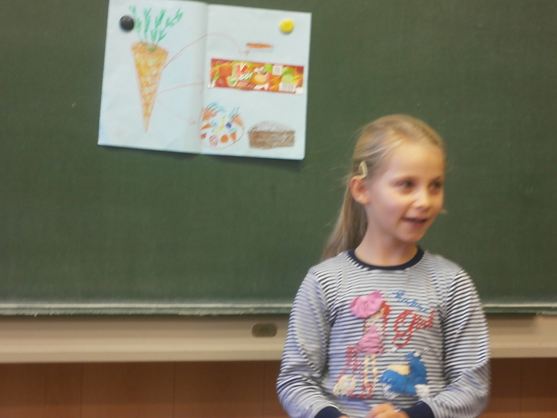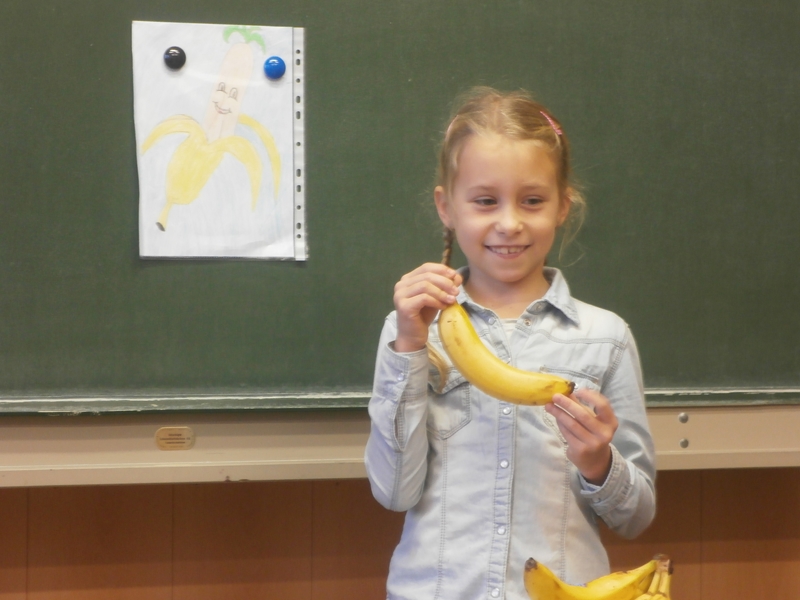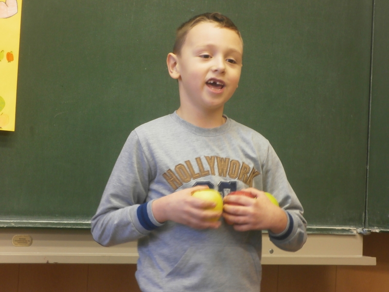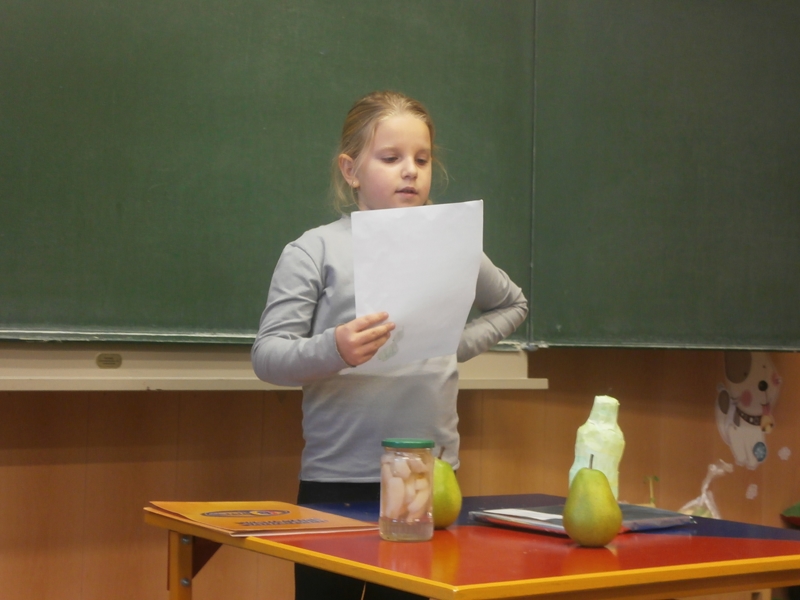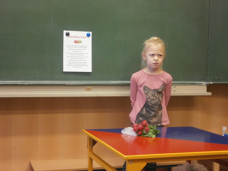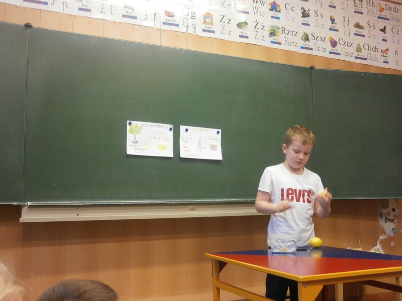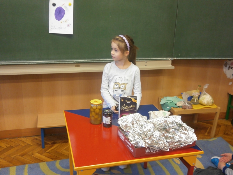 Jednym z jesiennych tematów realizowanych w ramach edukacji przyrodniczej jest poznanie warzyw i owoców oraz ich walorów zdrowotnych. Uczniowie z klasy 1 a przygotowali ciekawe prezentacje na ten temat. Każdy prezentował jedno warzywo lub owoc, opowiadał o nim i jego walorach zdrowotnych oraz o tym co można z niego zrobić. Po zakończeniu prezentacji uczniowie ze smakiem spożywali przyniesione okazy i wykonane z nich sałatki, przetwory, desery.
