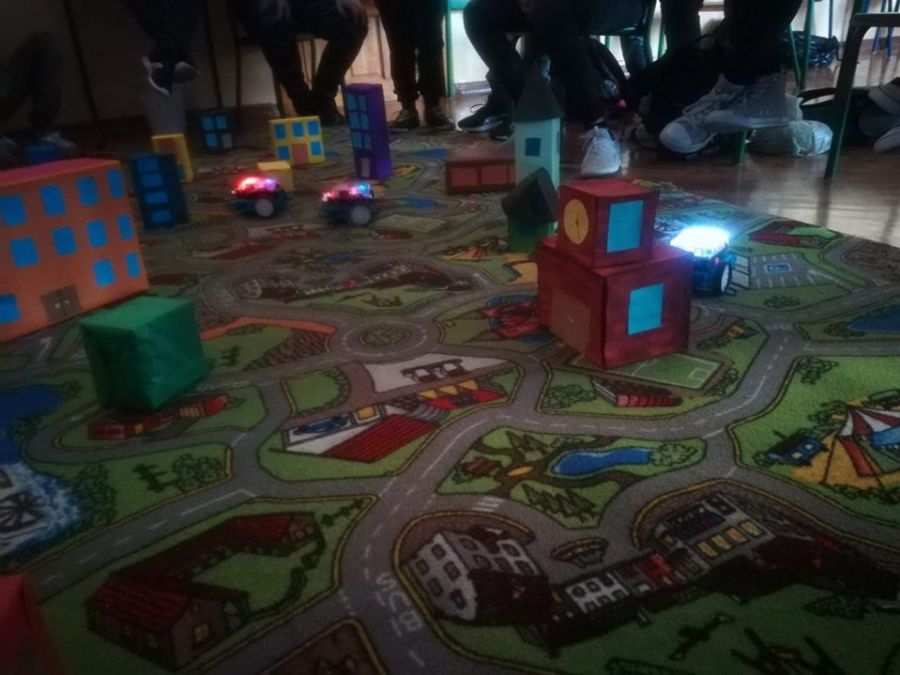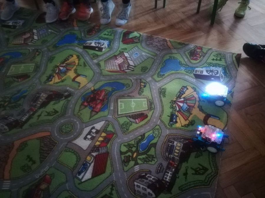 Uczniowie klasy 7a omawiali tematykę z zakresu nowych technologii, zapoznawali się ze słownictwem i wyrażeniami, a następnie przygotowali lekcję z użyciem zakupionych przez szkołę MBOTÓW- urządzeń do programowania i kodowania.